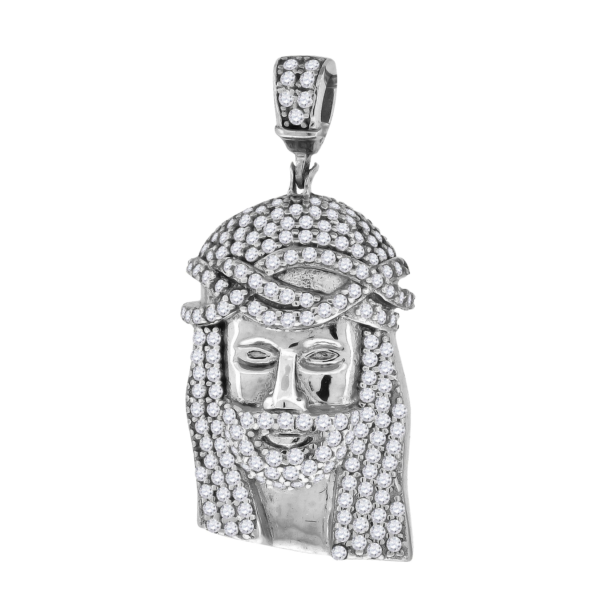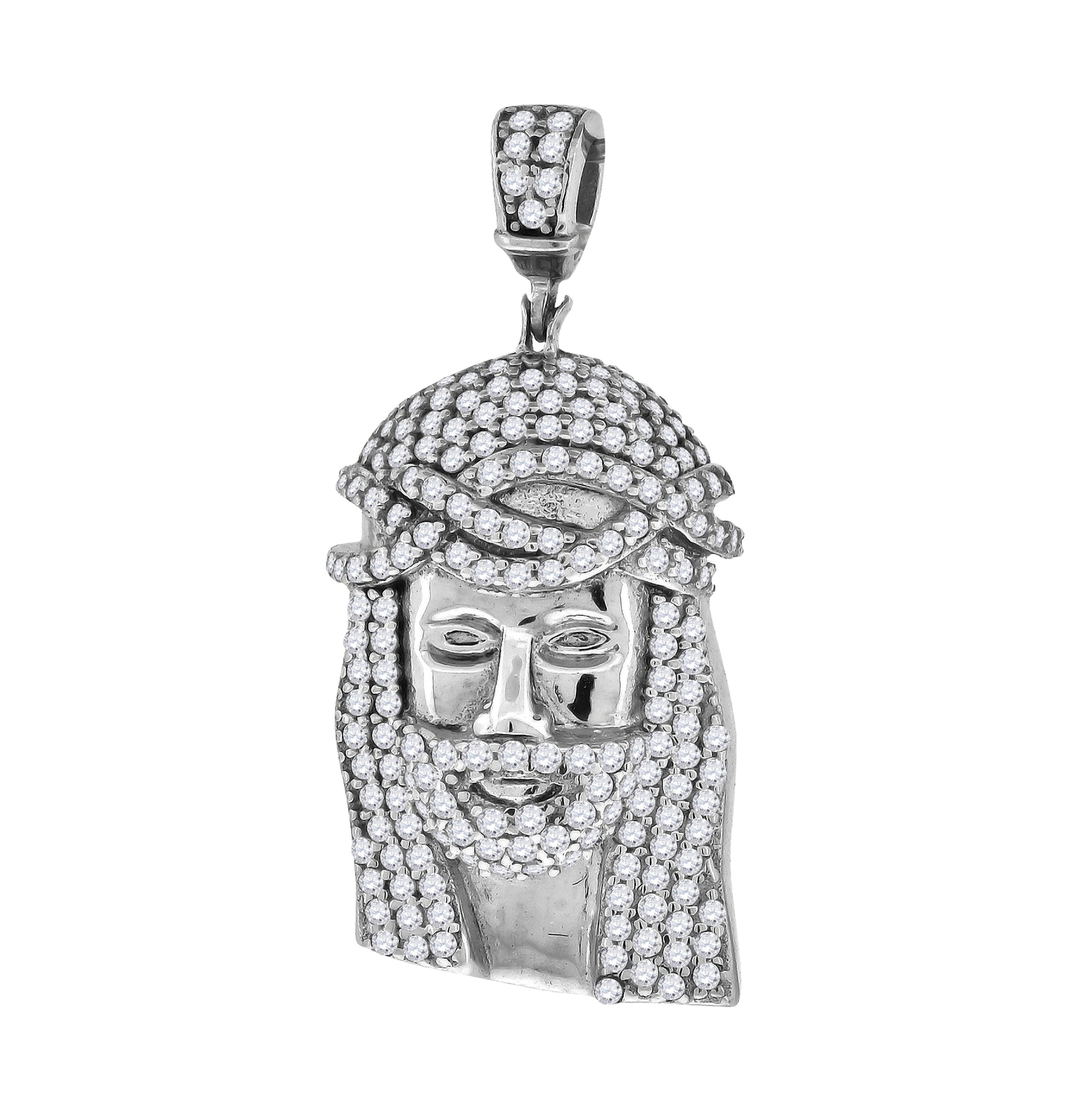 Sterling Silver Mens Cubic Zirconia Jesus Religious Charm Pendant