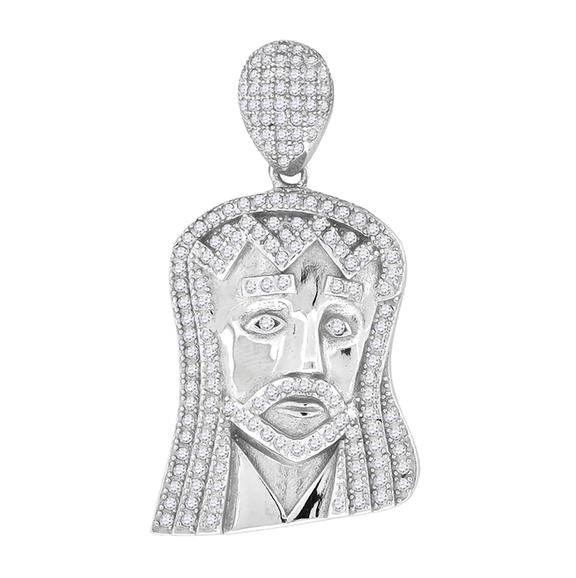 Sterling Silver Mens Cubic-Zirconia Jesus Religious Charm Pendant