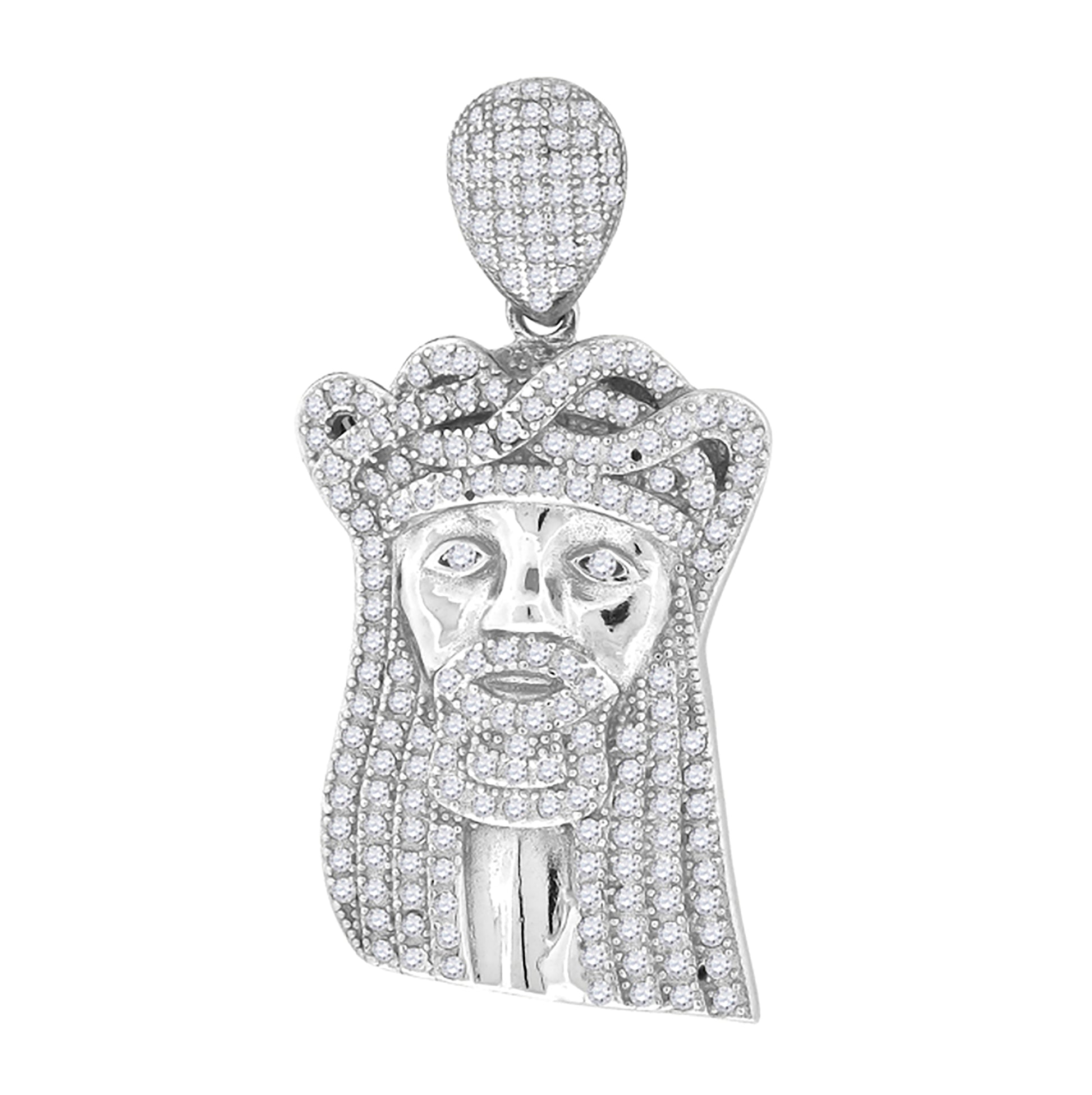 Sterling Silver Mens Cubic-Zirconia Jesus Religious Charm Pendant