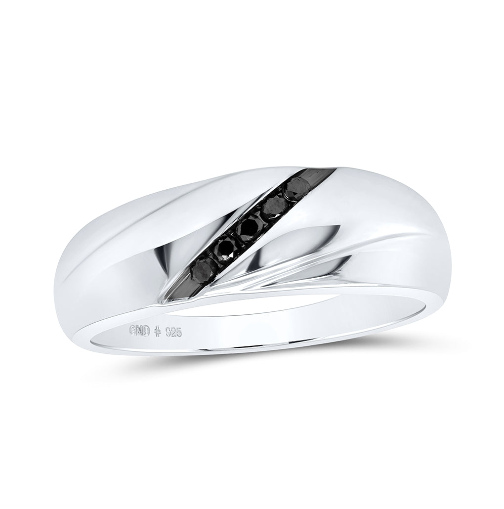 Sterling Silver Mens Round Black Color Enhanced Diamond Diagonal Row Band Ring 1/8 Cttw, Mens Size: 7-13