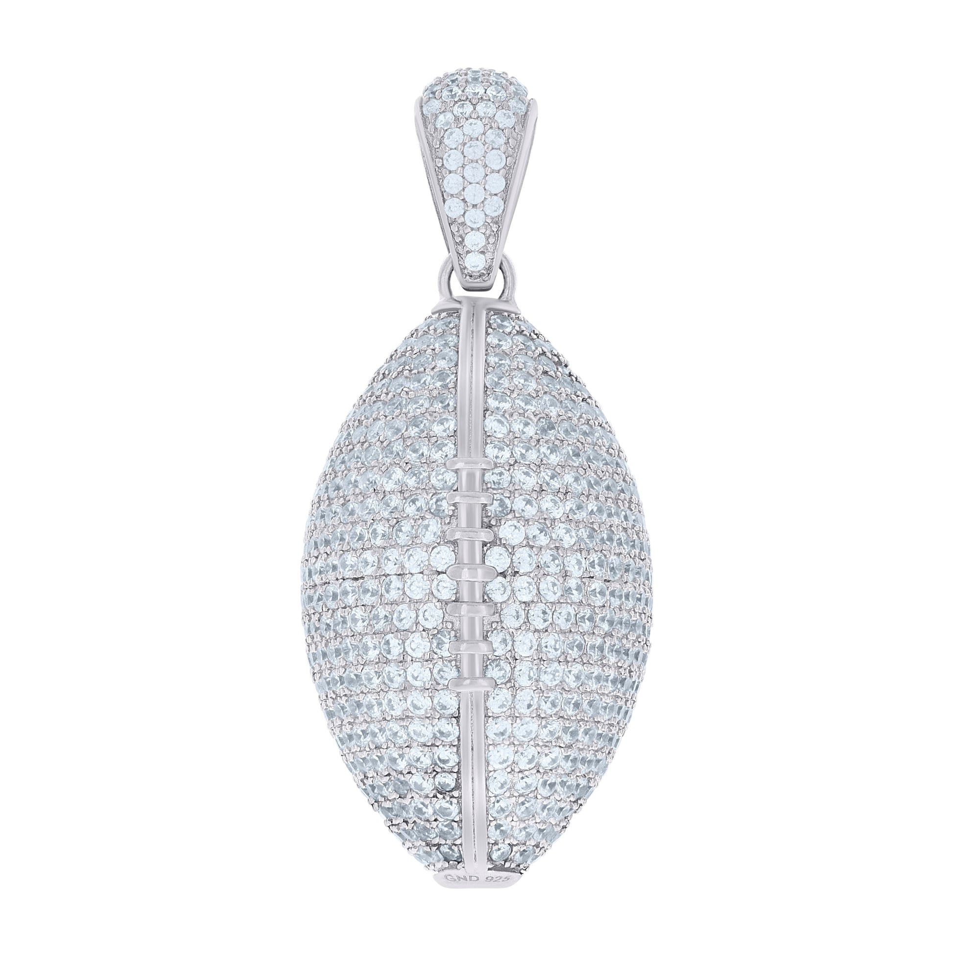 Sterling Silver Mens Round Cubic Zirconia Football Charm Pendant