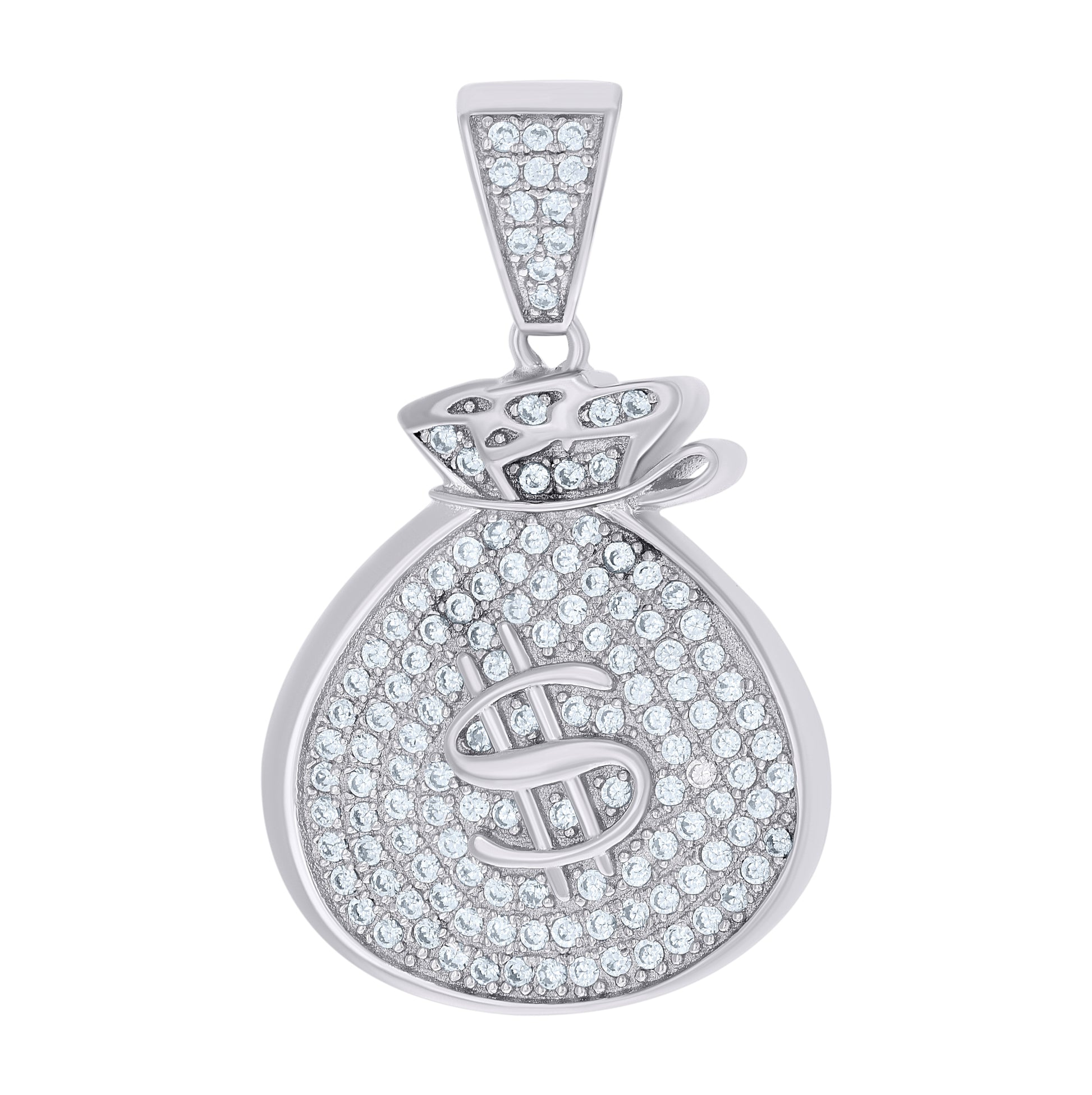Sterling Silver Mens Round Cubic Zirconia Money Bag Cluster Charm Pendant