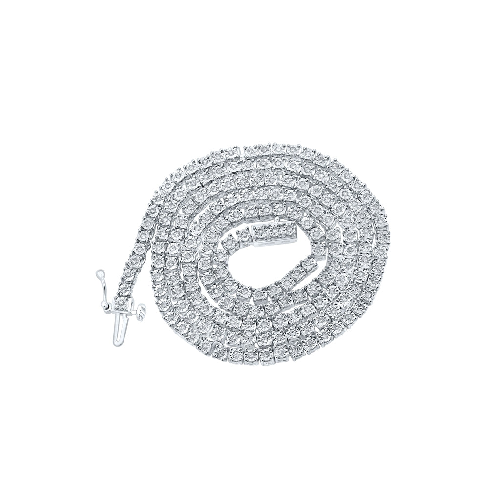 Sterling Silver Mens Round Diamond 22-inch Link Chain Necklace 1-3/8 Cttw, Length: 22.01 In
