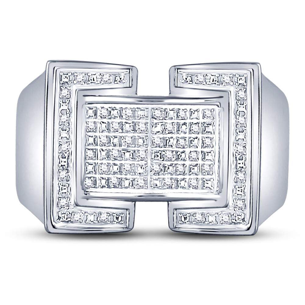 Sterling Silver Mens Round Diamond Domed Rectangle Cluster Ring 1/8 Cttw, Mens Size: 7-13
