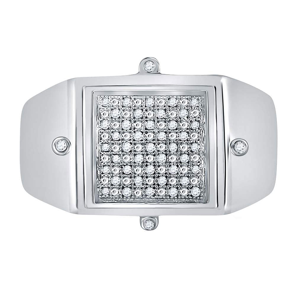 Sterling Silver Mens Round Diamond Square Cluster Ring 1/6 Cttw, Mens Size: 7-13
