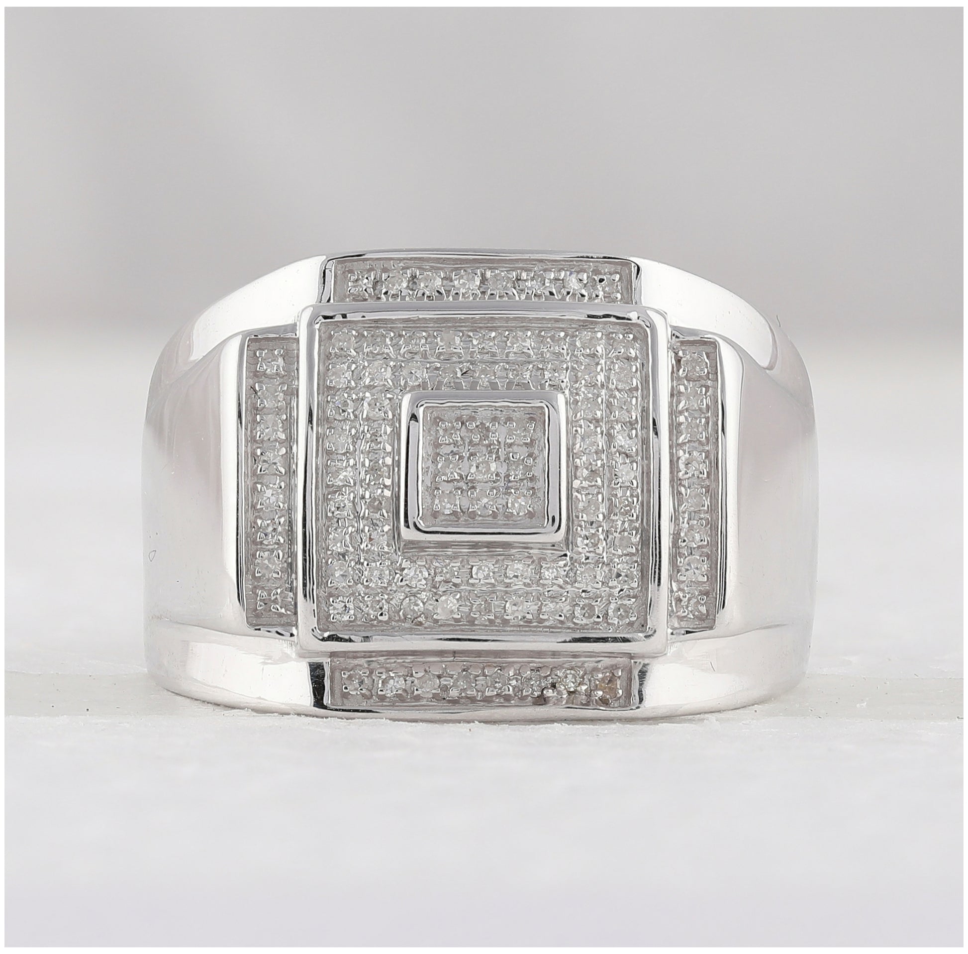 Sterling Silver Mens Round Diamond Square Ring 1/4ctw, Mens Size: 7-13