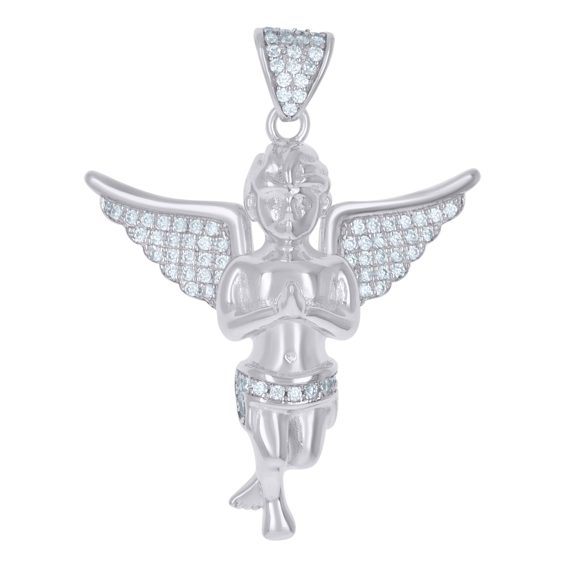 Sterling Silver Or Yellow-Tone Mens Cubic Zirconia Religious Praying Angel Charm Pendant
