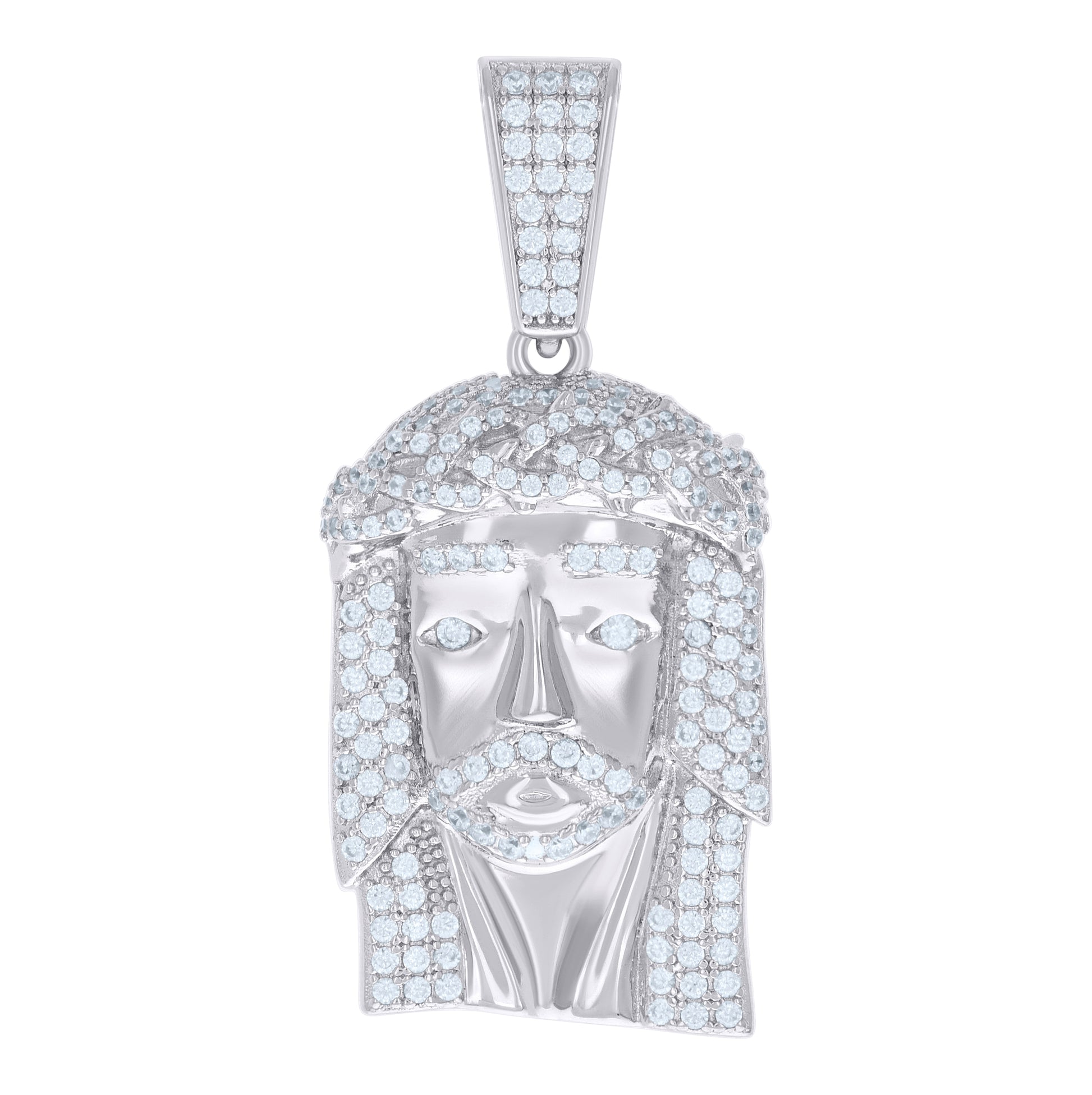 Sterling Silver Or Yellow-Tone Mens Cubic Zirconia Jesus Religious Charm Pendant