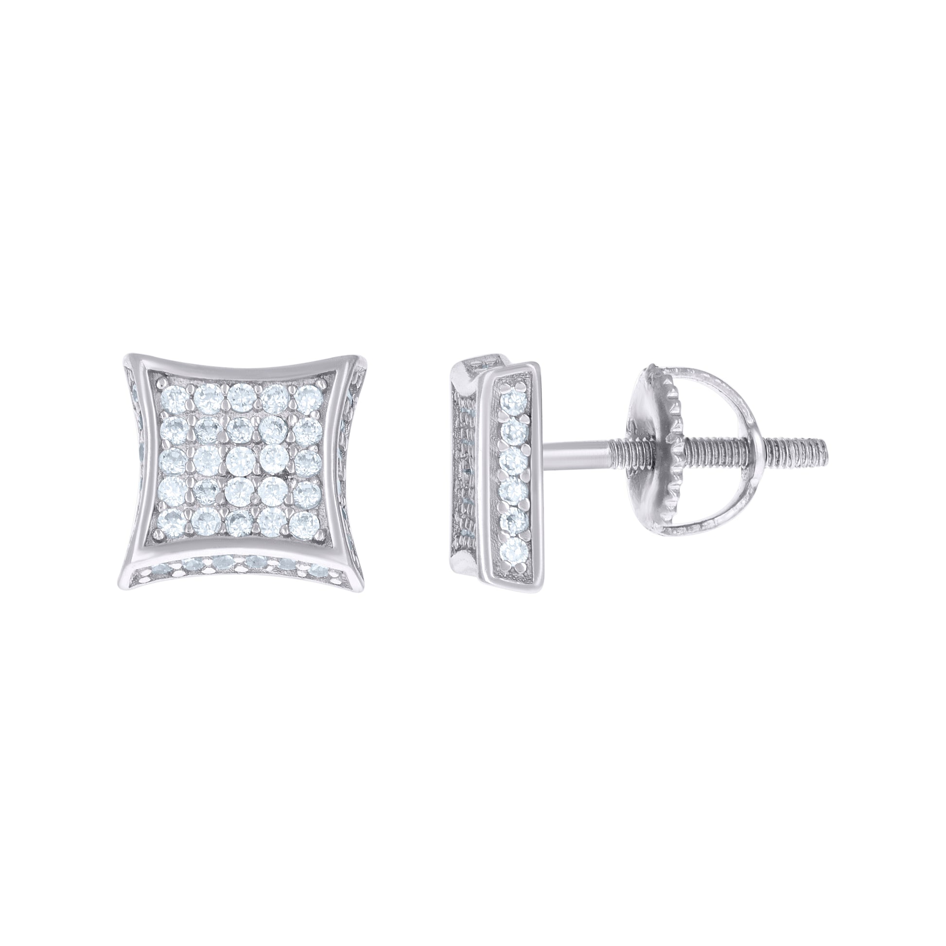Sterling Silver Or Yellow-Tone Unisex Cubic Zirconia Kite Stud Earrings