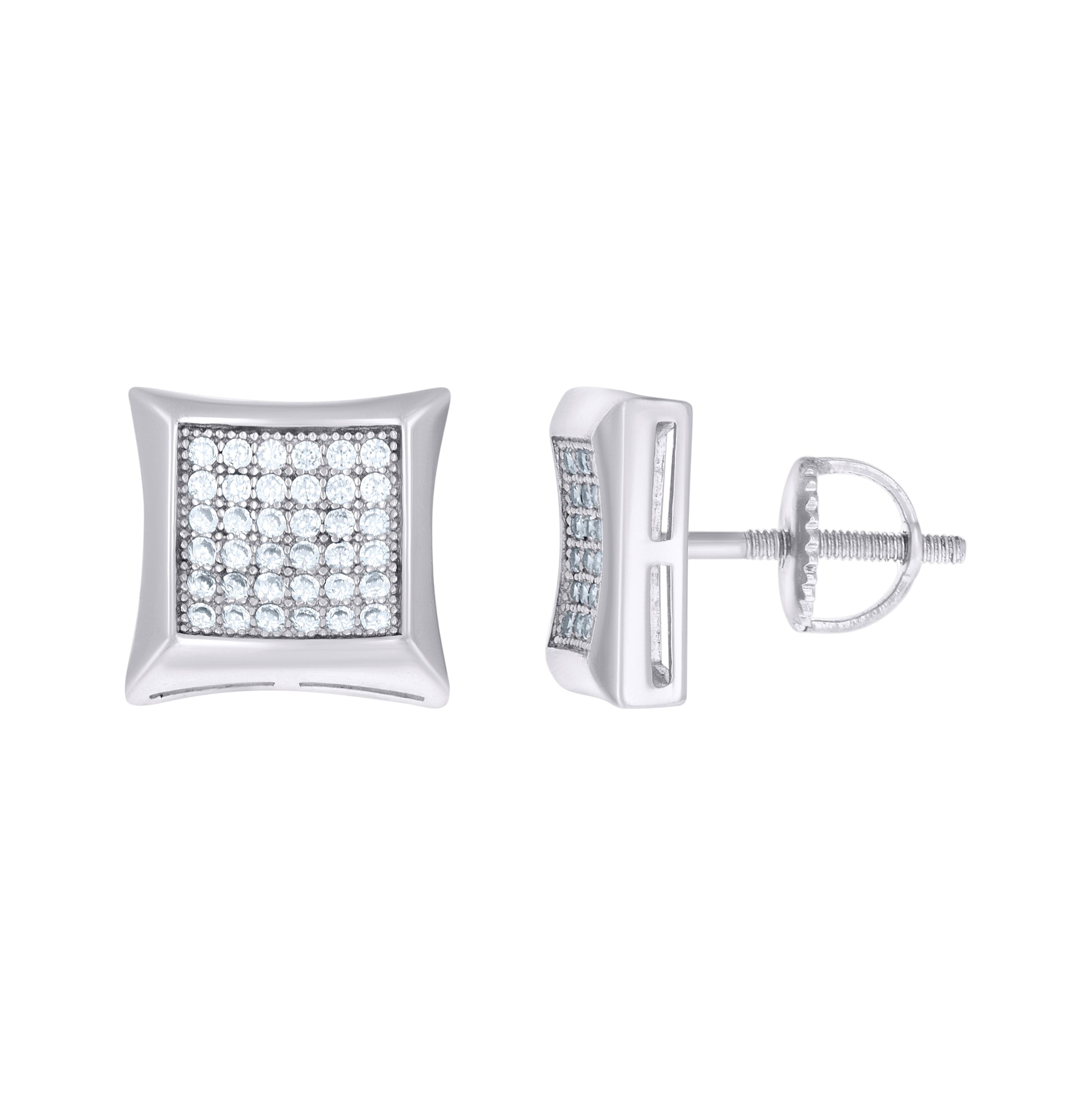 Sterling Silver Or Yellow-Tone Unisex Cubic Zirconia Kite Stud Earrings