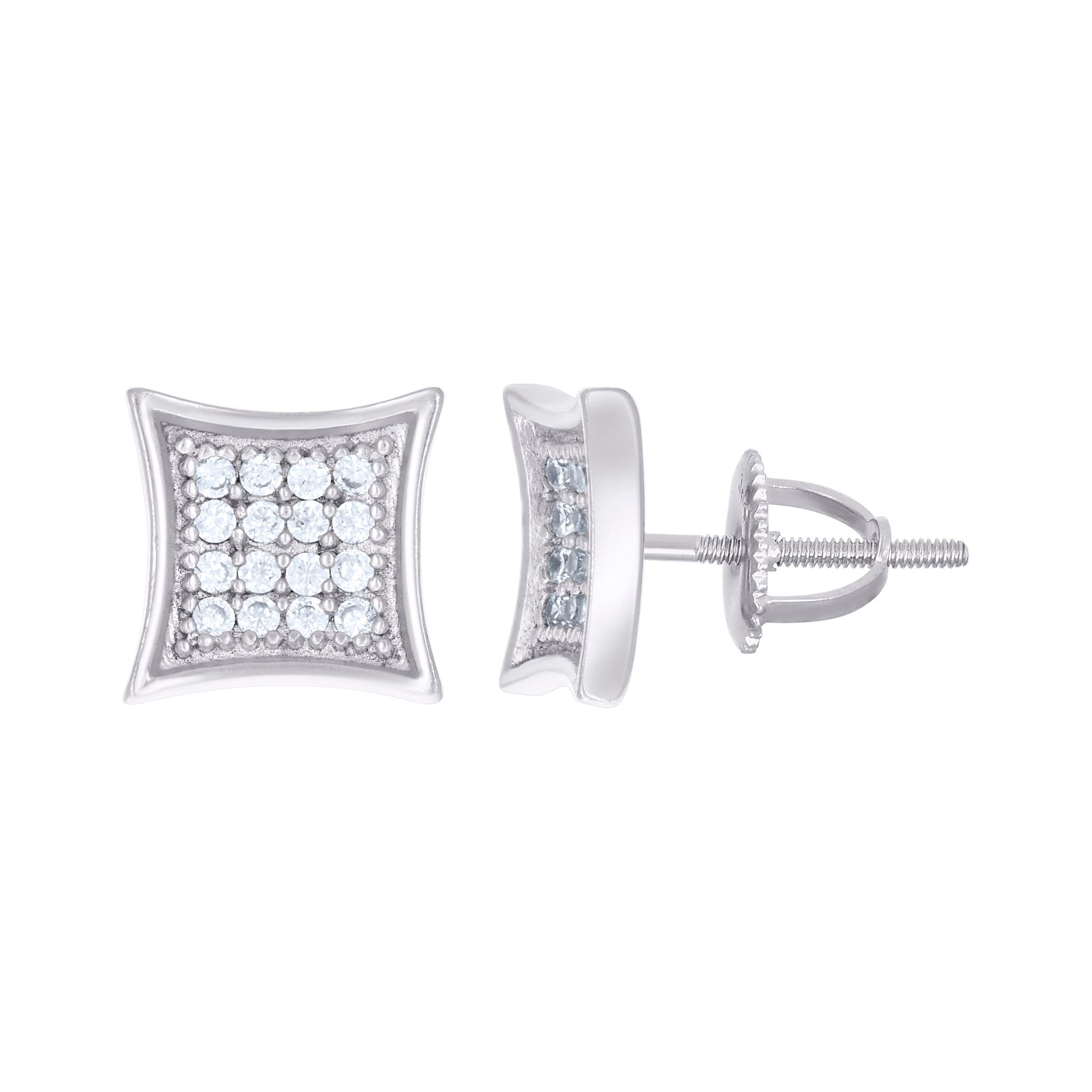 Sterling Silver Or Yellow-Tone Unisex Cubic Zirconia Kite Stud Earrings