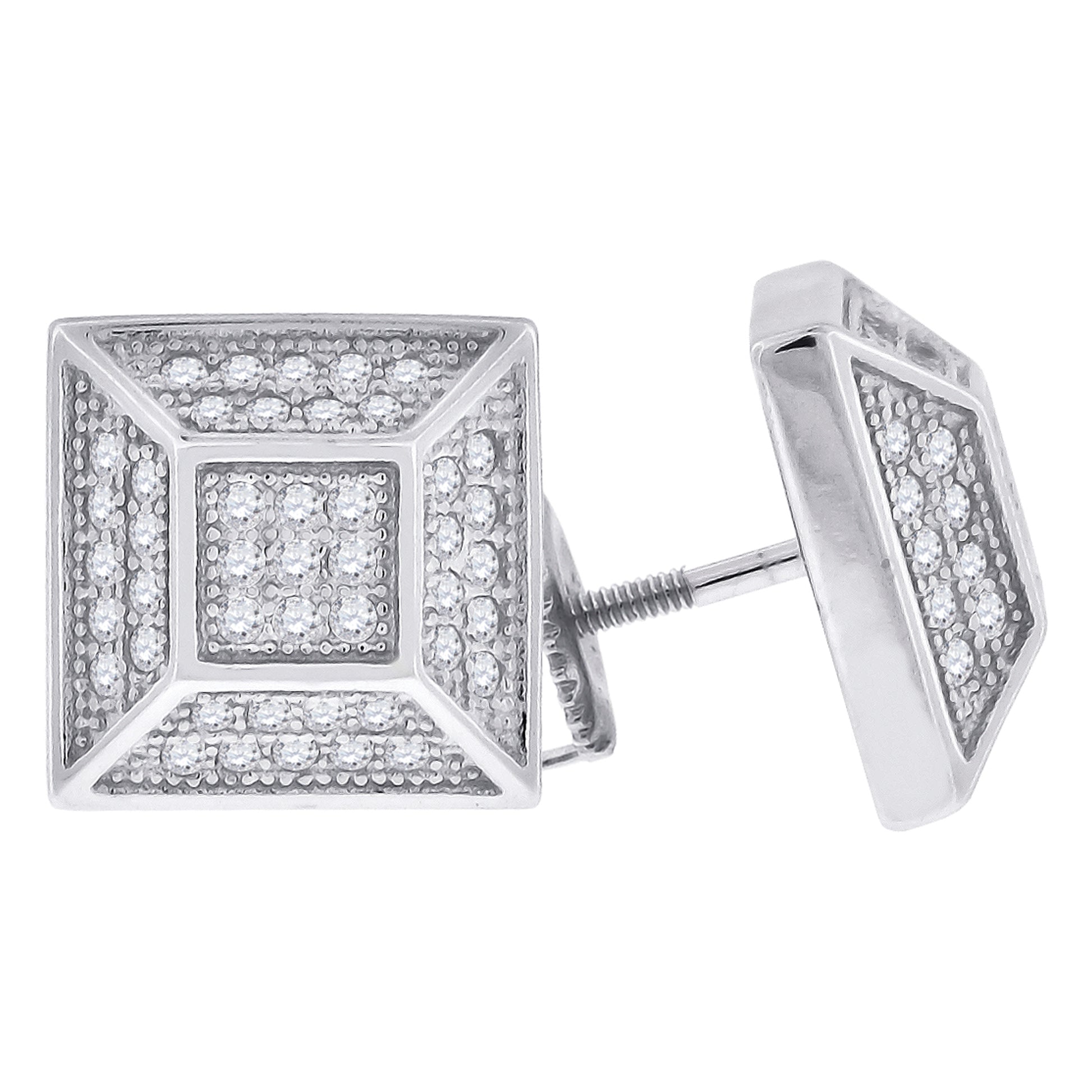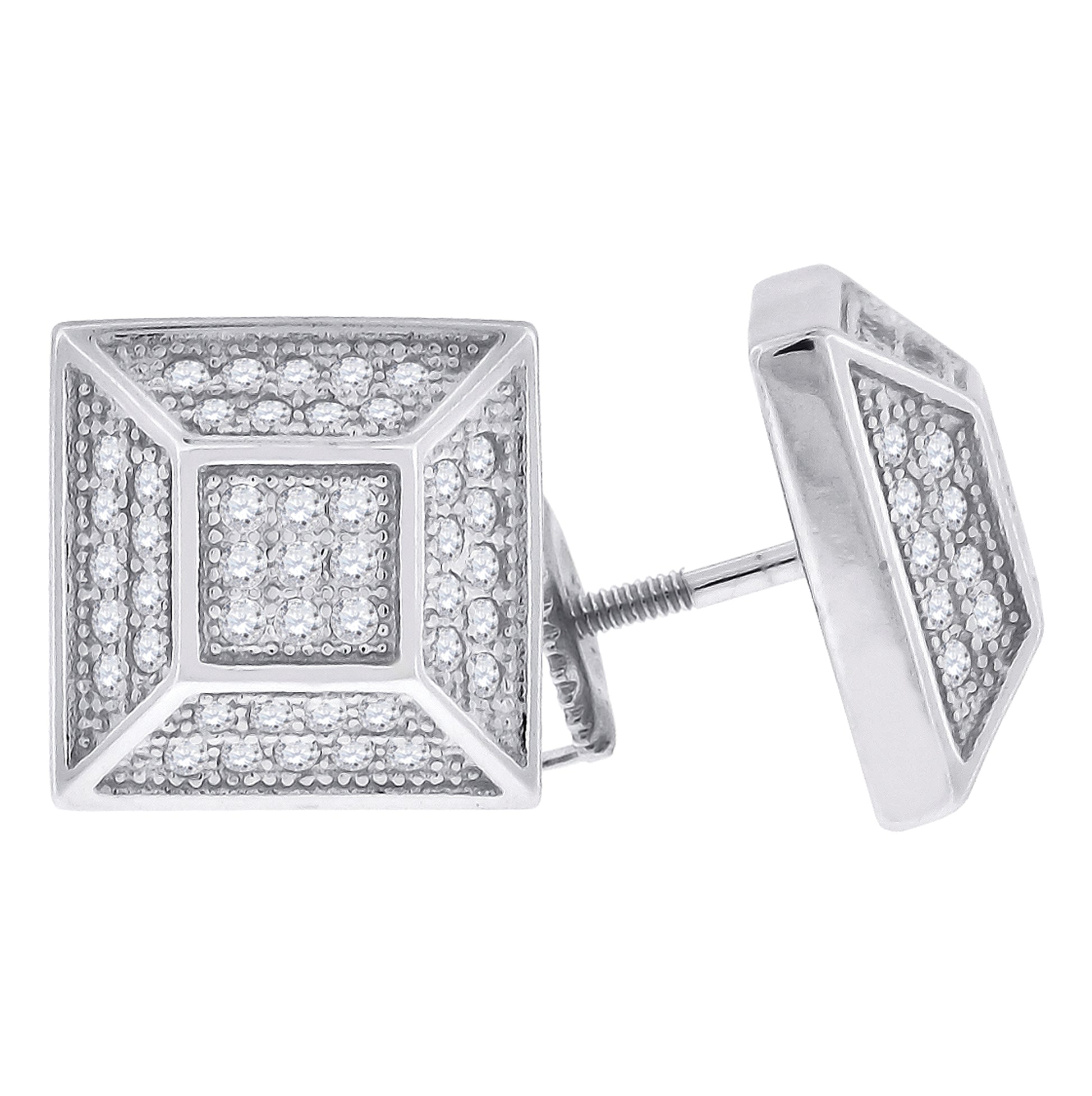 Sterling Silver Or Yellow-Tone Unisex Cubic Zirconia Pyramid Stud Earrings