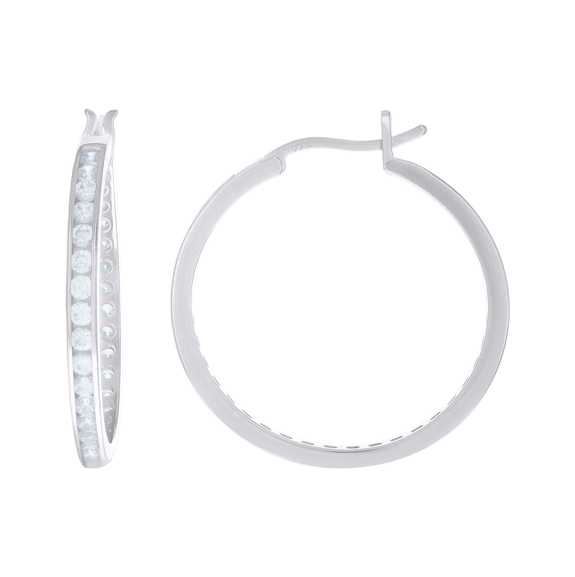 Sterling Silver Or Yellow-Tone Womens Cubic Zirconia In-Out Hoop Earrings 28mm
