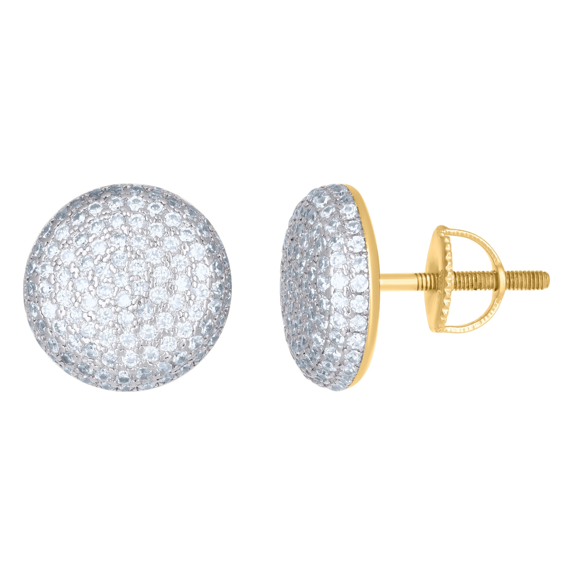 Sterling Silver Or Yellow-Tone Womens Cubic Zirconia Round Stud Earrings