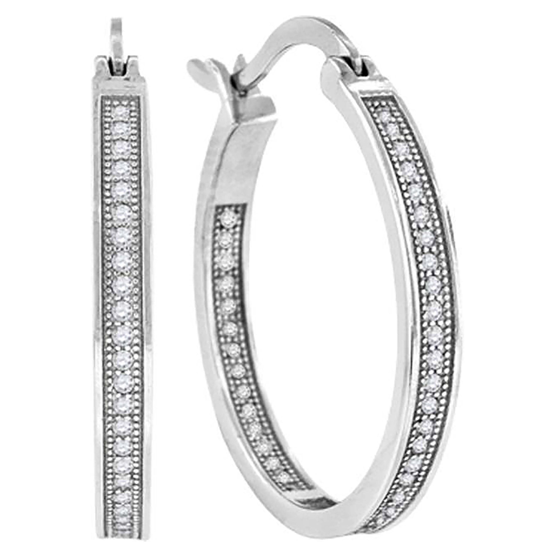 Sterling Silver Or Yellow-Tone Womens Cubic Zirconia Single Row Hoop Earrings