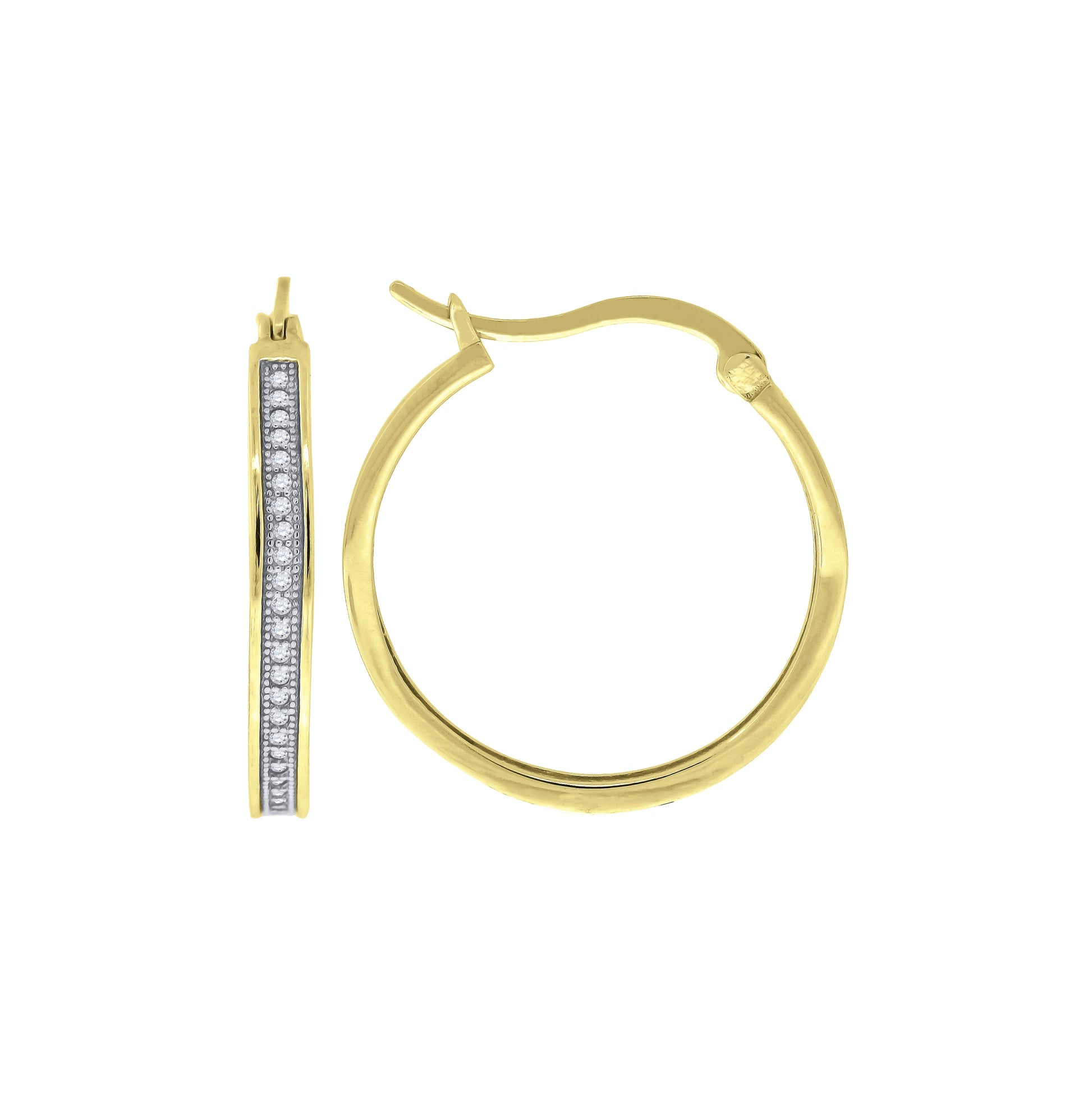 Sterling Silver Or Yellow-Tone Womens Cubic Zirconia Single Row Migraine Huggie Hoop Earrings