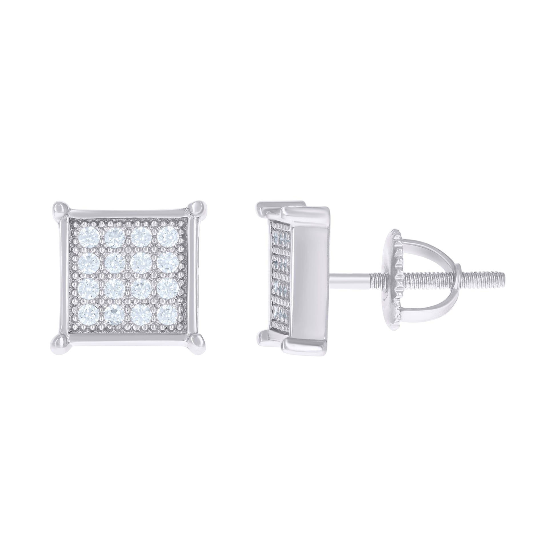 Sterling Silver Or Yellow-Tone Womens Cubic Zirconia Square Stud Earrings