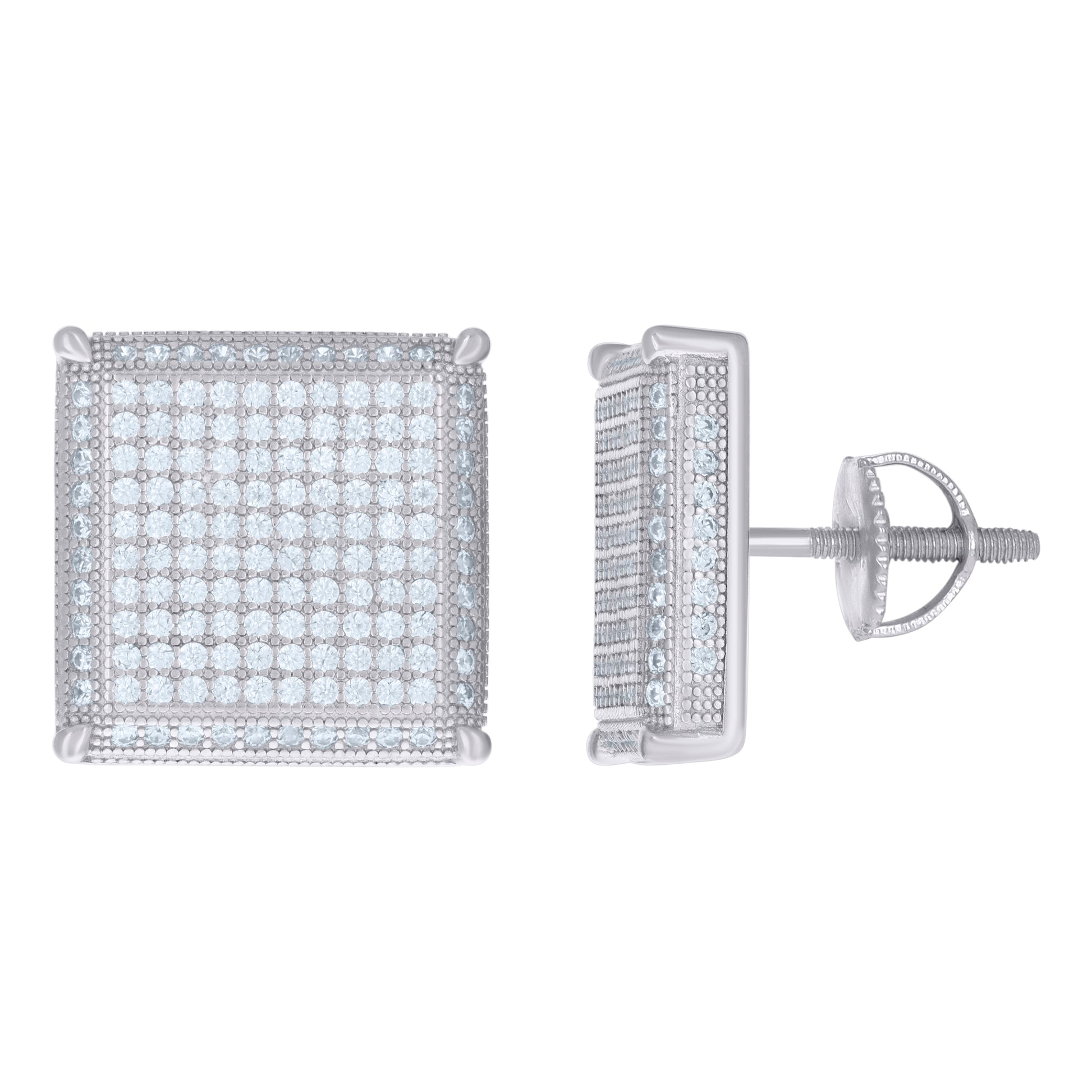Sterling Silver Or Yellow-Tone Womens Cubic Zirconia Square Stud Earrings