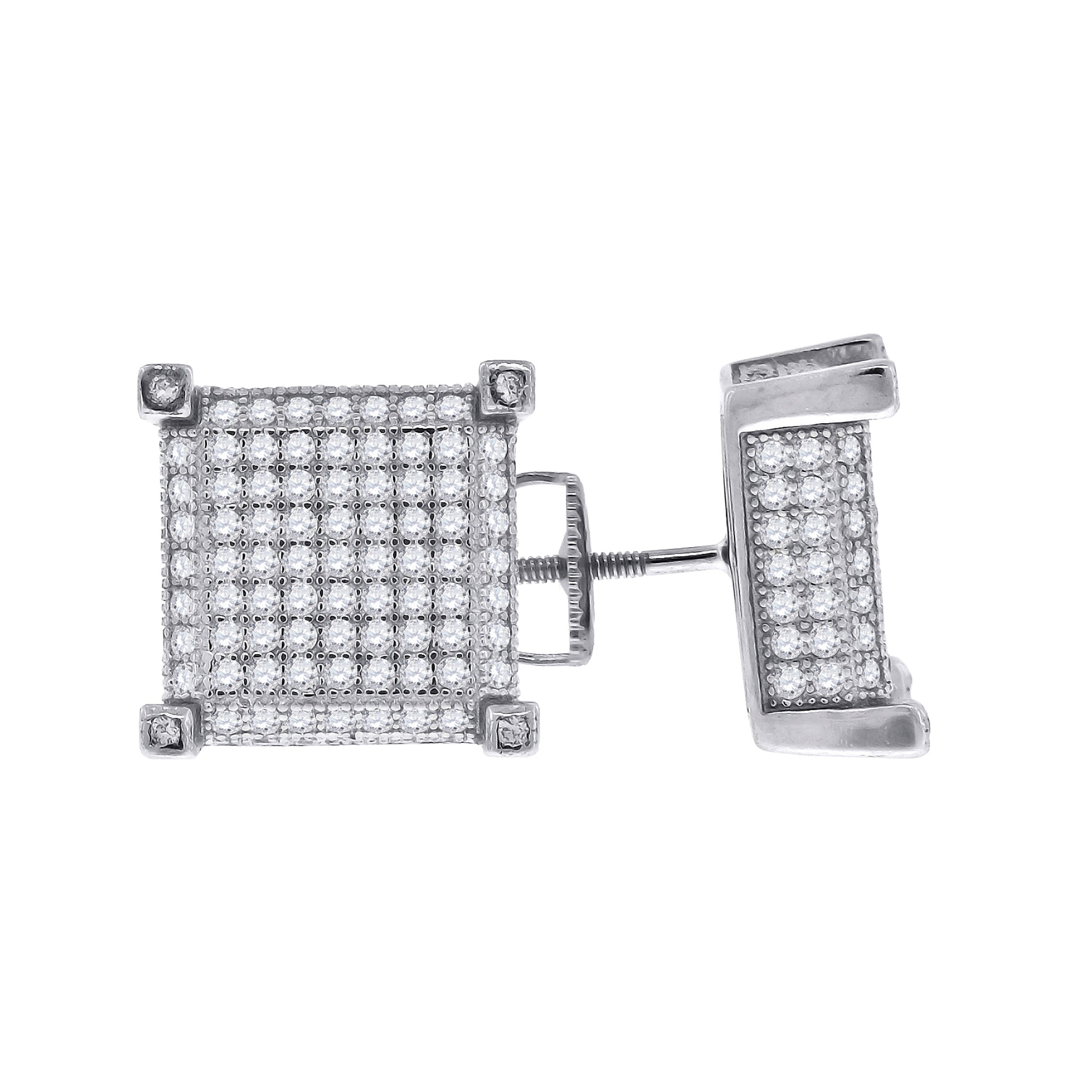 Sterling Silver Or Yellow-Tone Womens Cubic Zirconia Square Stud Earrings