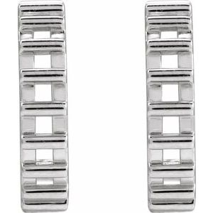 Sterling Silver Pair Deco Cutout Hoop Earrings, Length: 12.5 Mm, Thickness: 11.1 Mm