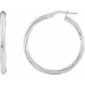 Sterling Silver Pair Hollow Twisted Hoop Earrings, Length: 30 Mm, Thickness: 2.5 Mm