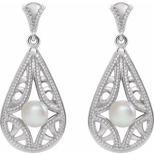 - Description: Cultured White Freshwater Pearl Dangle Earrings