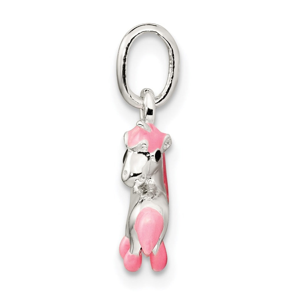 Sterling Silver Polished Pink & Black Enameled Pony Children's Pendant