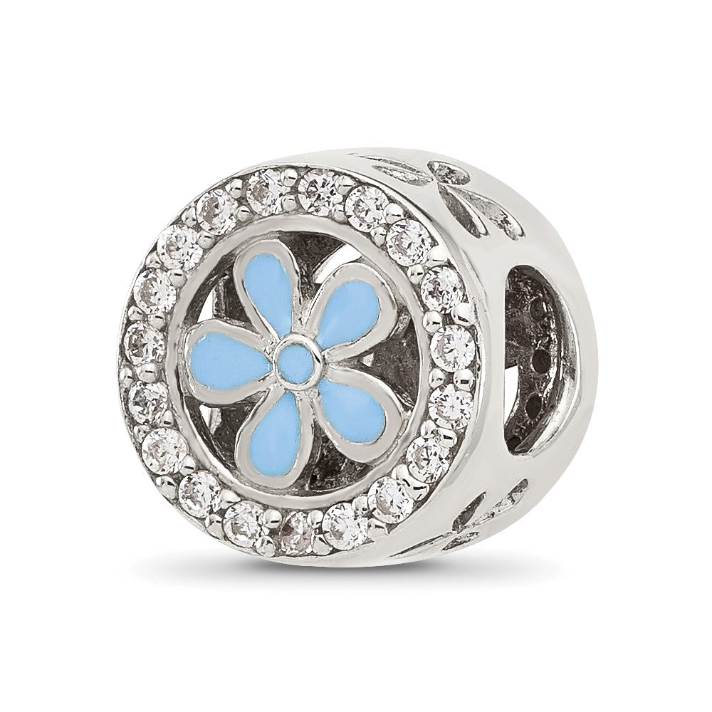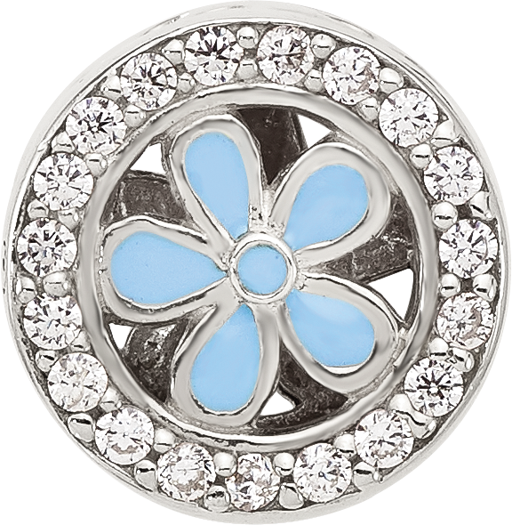 Sterling Silver Reflections Cubic Zirconia and Light Blue Enamel Flower Circle Bead