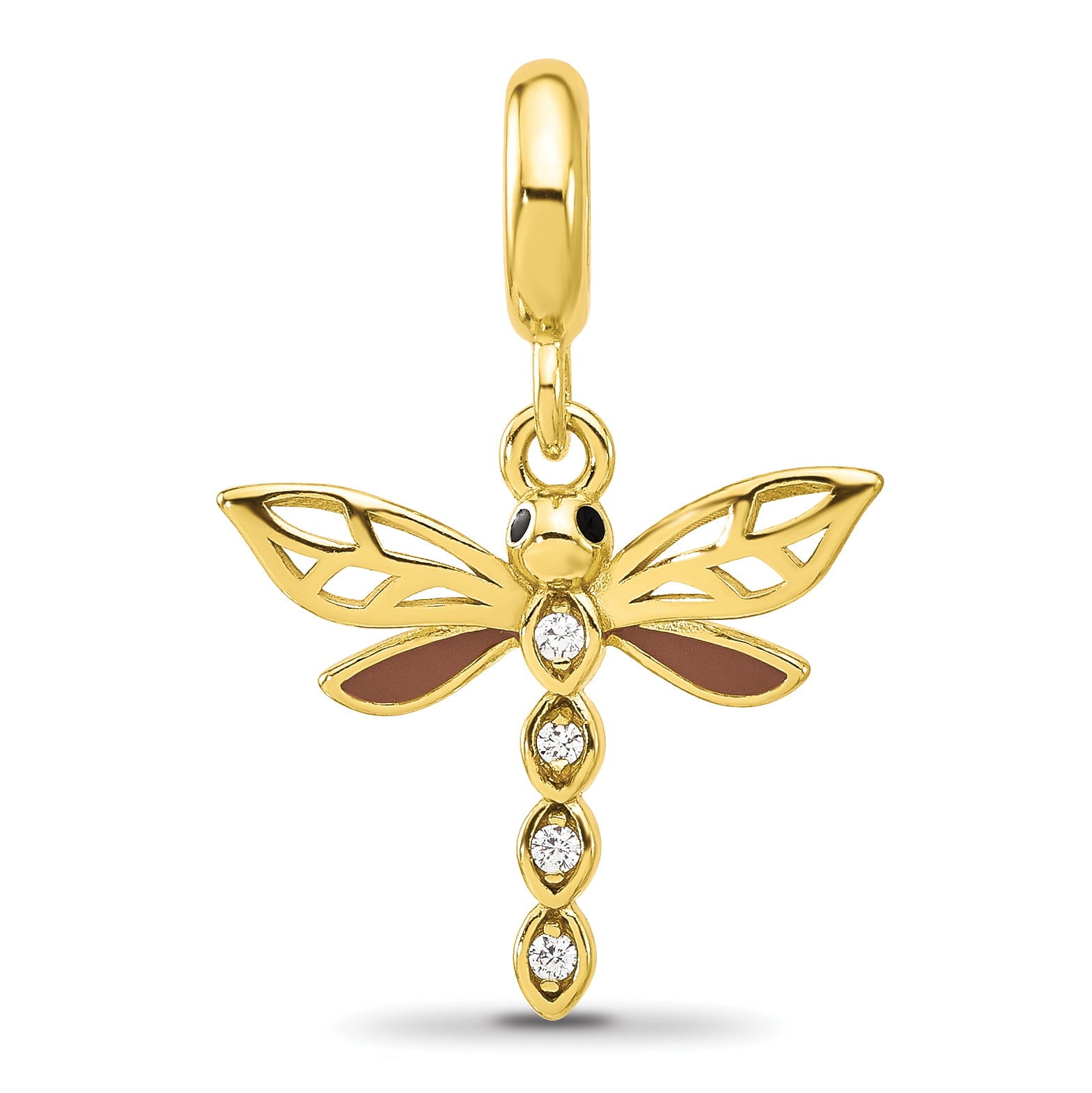 Sterling Silver Reflections Gold plated Cubic Zirconia and Enamel Dragonfly Dangle Bead