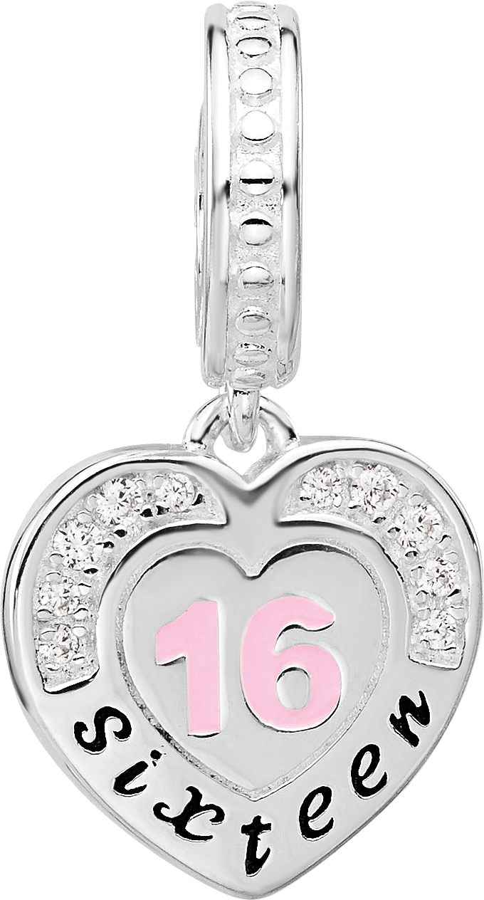 Sterling Silver Reflections Rh-plated Enameled & Cubic Zirconia 16 Dangle Bead