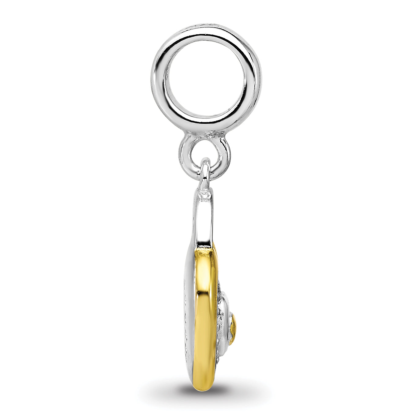 Sterling Silver Reflections Rh-plated Gold plated Cubic Zirconia Heart Dangle Bead