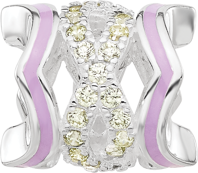 Sterling Silver Reflections Rh-plated Purple Enamel & Yellow Cubic Zirconia Bead