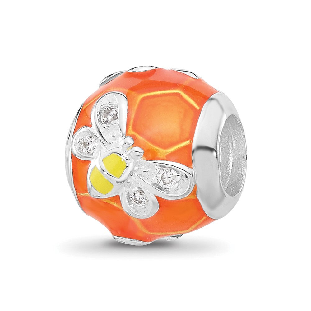 Sterling Silver Reflections Rhodium plated Enameled Cubic Zirconia Bee Bead