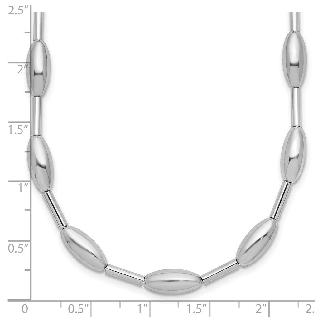 Sterling Silver RH-plat Polish Oval Beaded w/2in ext. Necklace