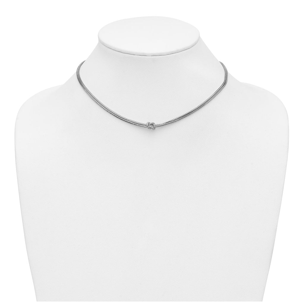 Sterling Silver RH-plat Polished 2-Strand Knot w/2in ext. Necklace