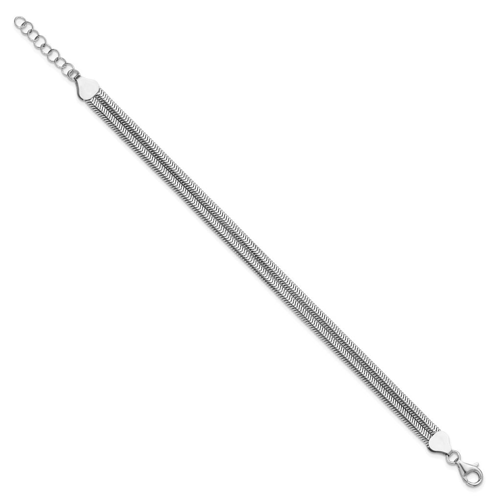 Sterling Silver RH-Plated Pol. Fancy 2-strand w/1in ext. Bracelet