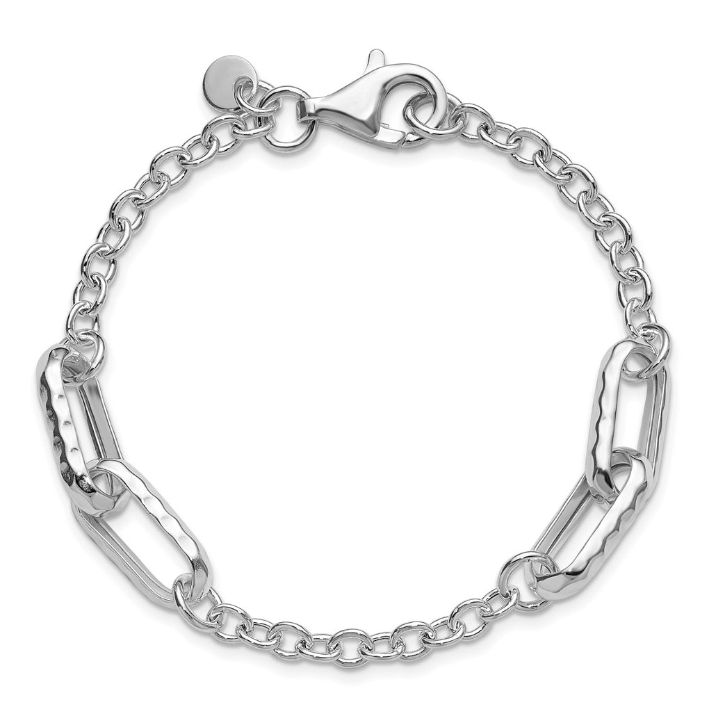 Sterling Silver RH-plated Polished and Hammered Link Bracelet
