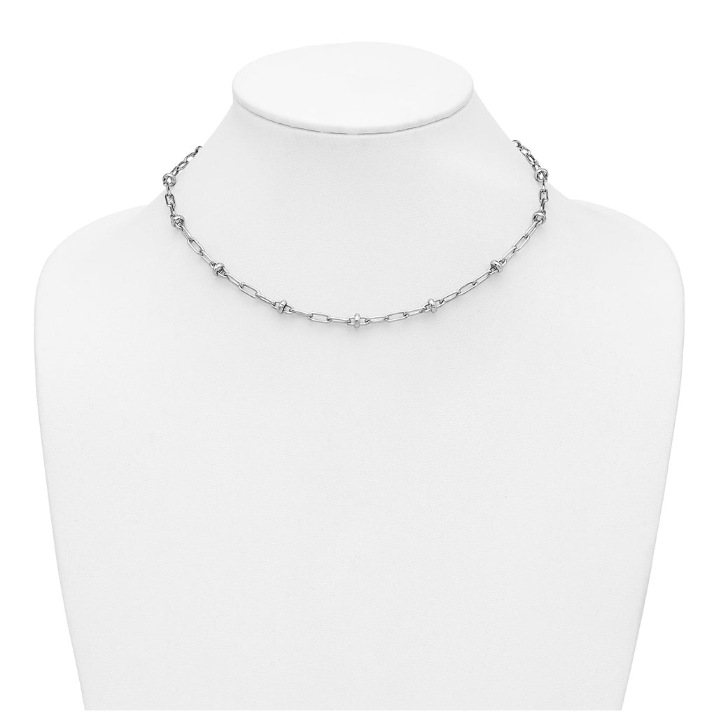 Sterling Silver RH-plated Polished Fancy Link w/2in ext. Necklace