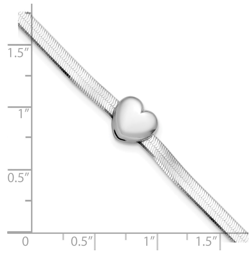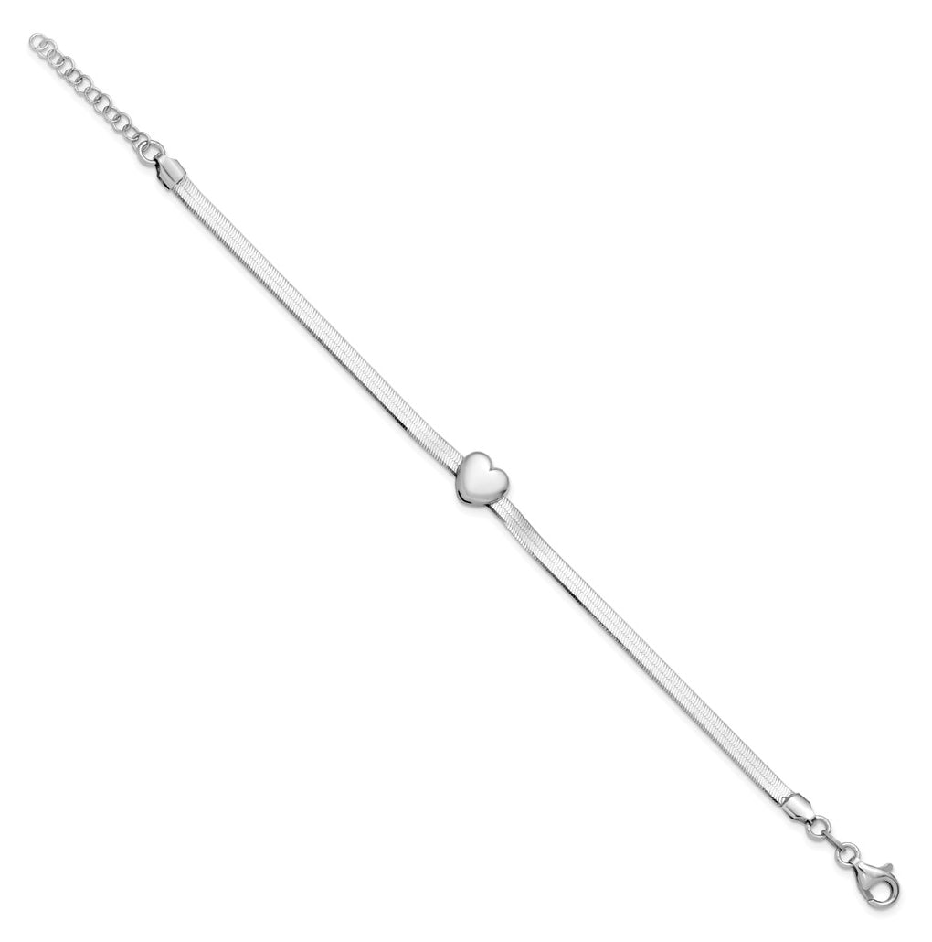 Sterling Silver RH-plated Polished Heart Herringbone w/ 1in ext. B