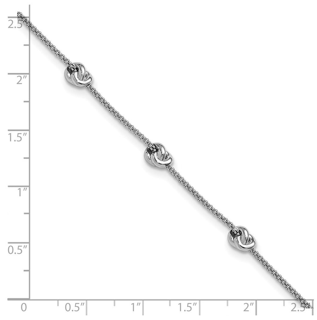 Sterling Silver RH-plt Polished Love Knot w/1in ext. Bracelet