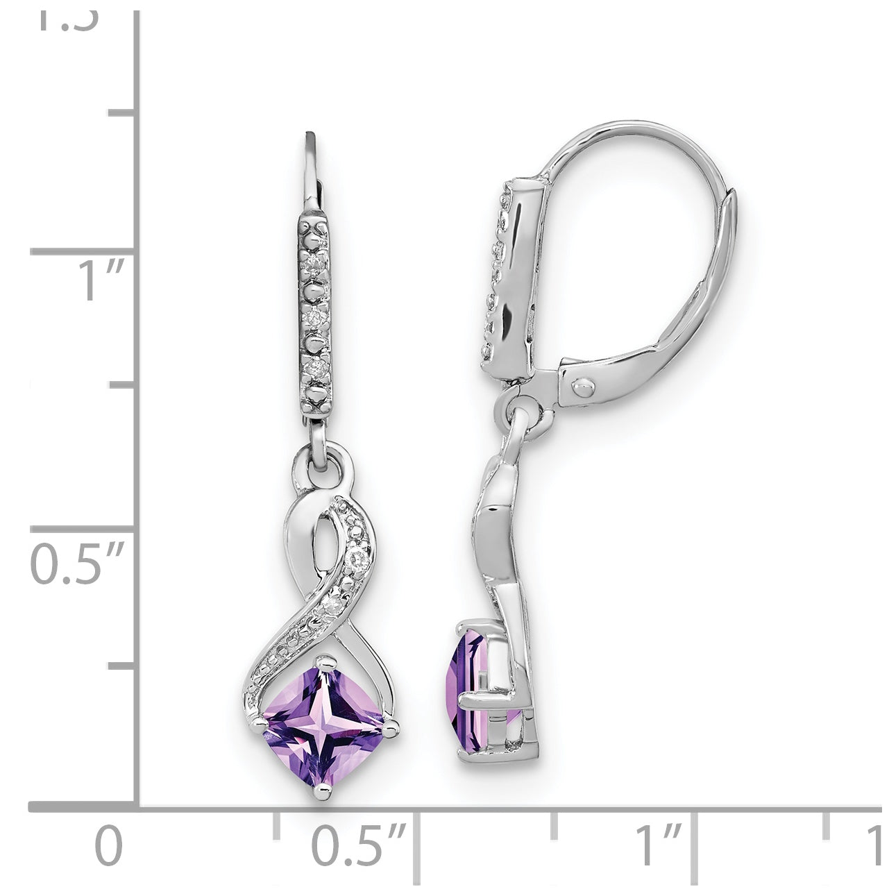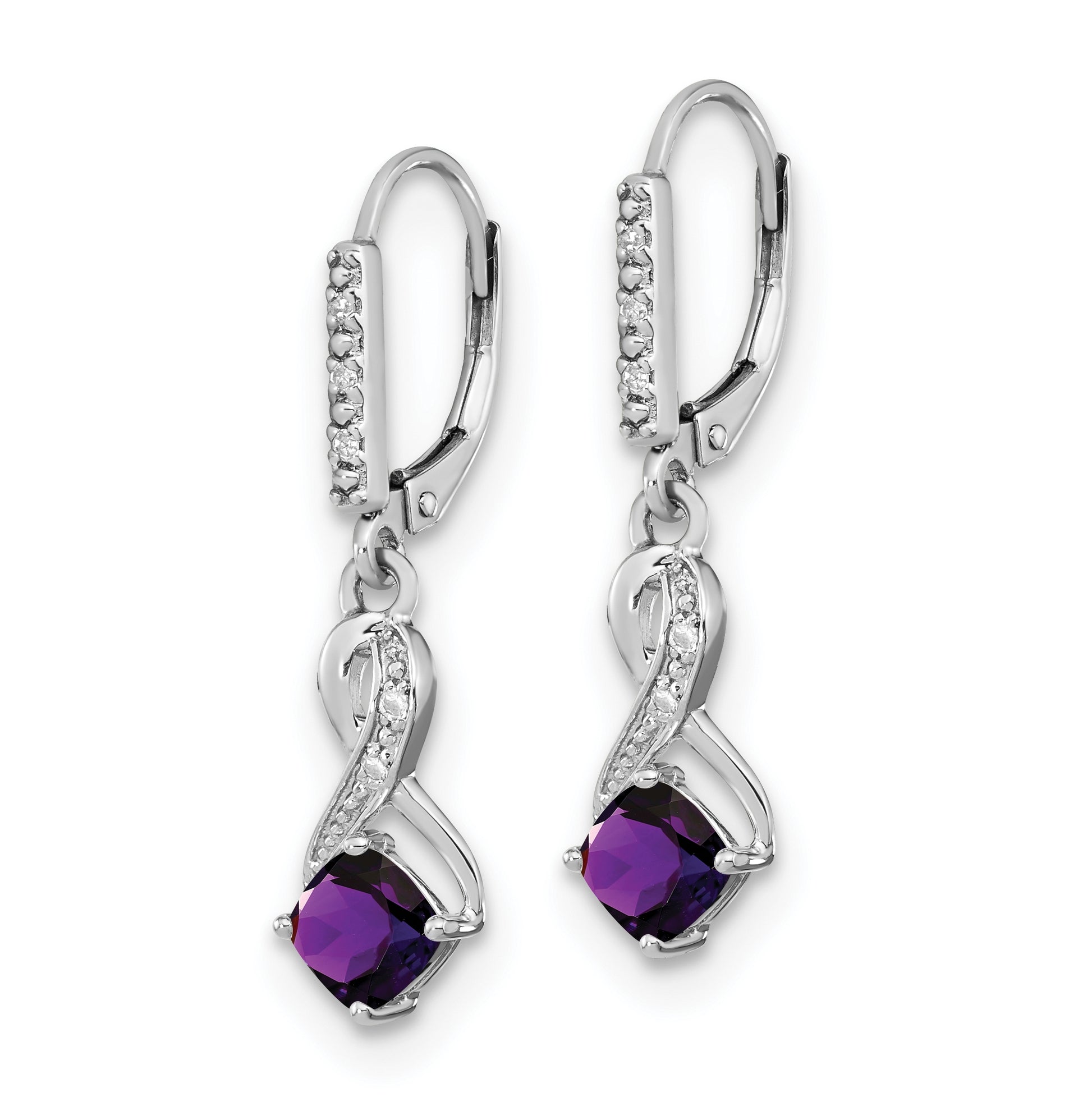 Sterling Silver Rhodium plated Amethyst and Diamond Earring