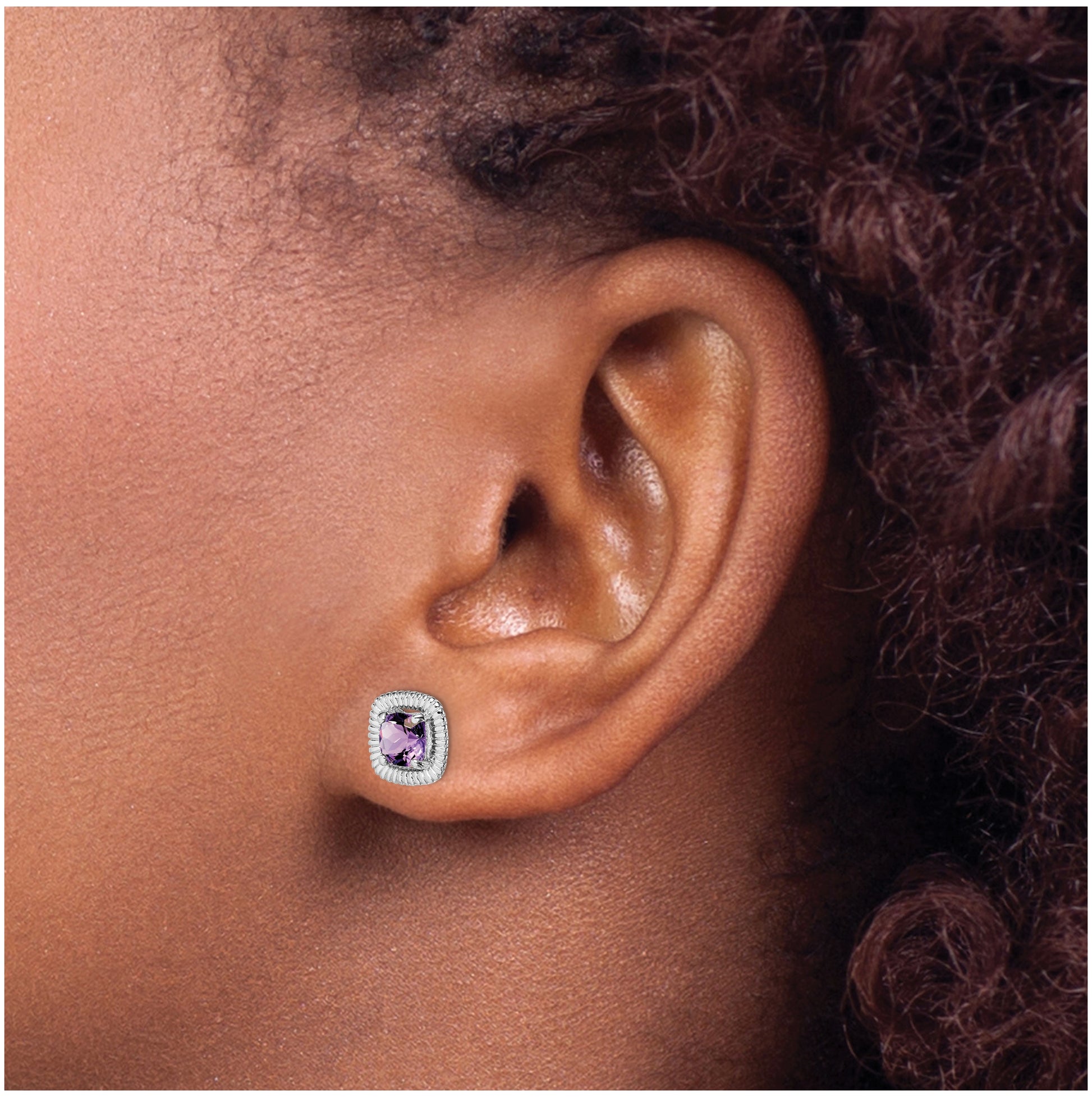 Sterling Silver Rhodium Plated Amethyst Square Post Earrings