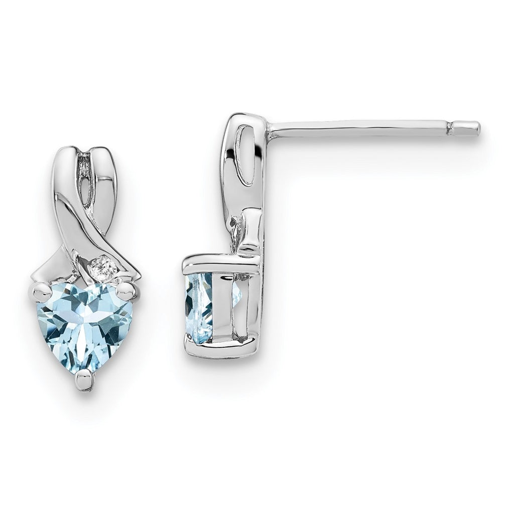 Sterling Silver Rhodium plated Aquamarine & Diamond Earrings