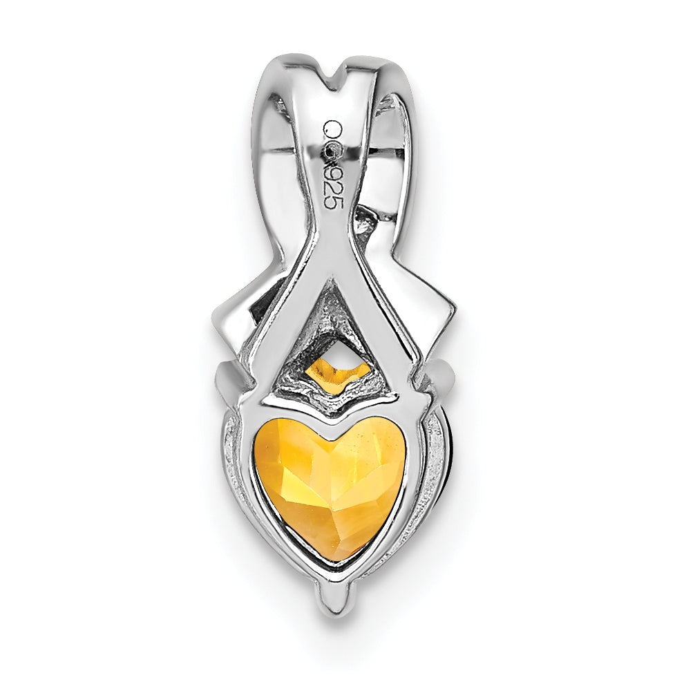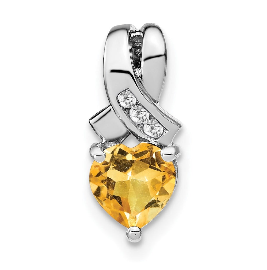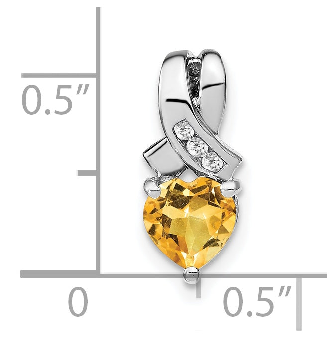 Sterling Silver Rhodium plated Citrine/Diamond Pendant
