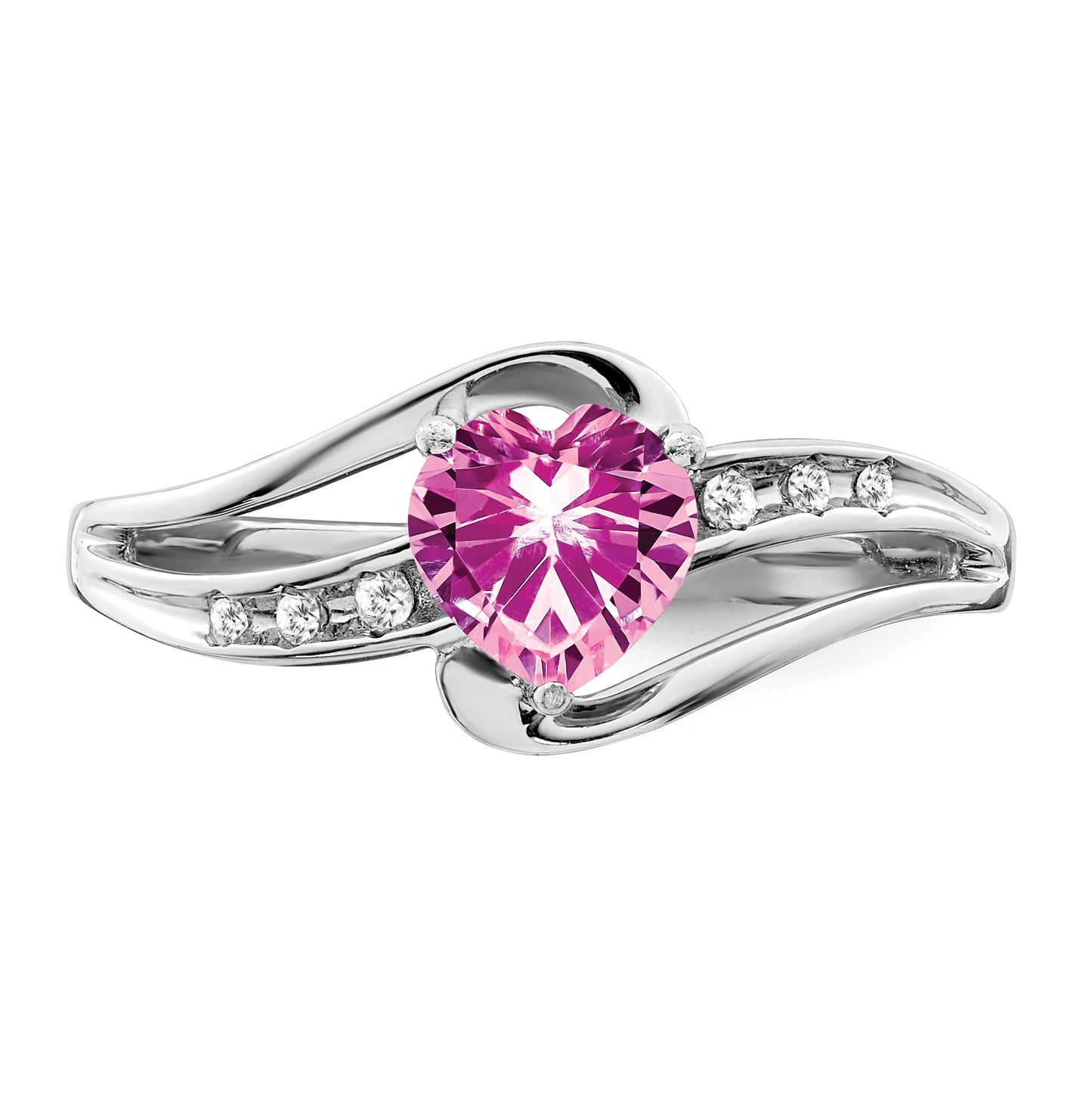 Sterling Silver Rhodium plated Cr Pink Sapphire and Diamond Ring, Size 6