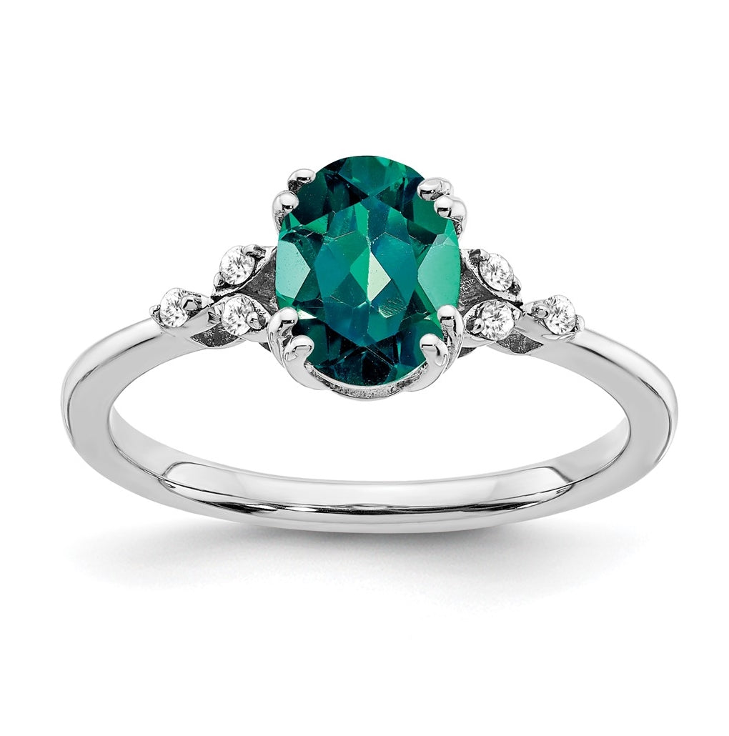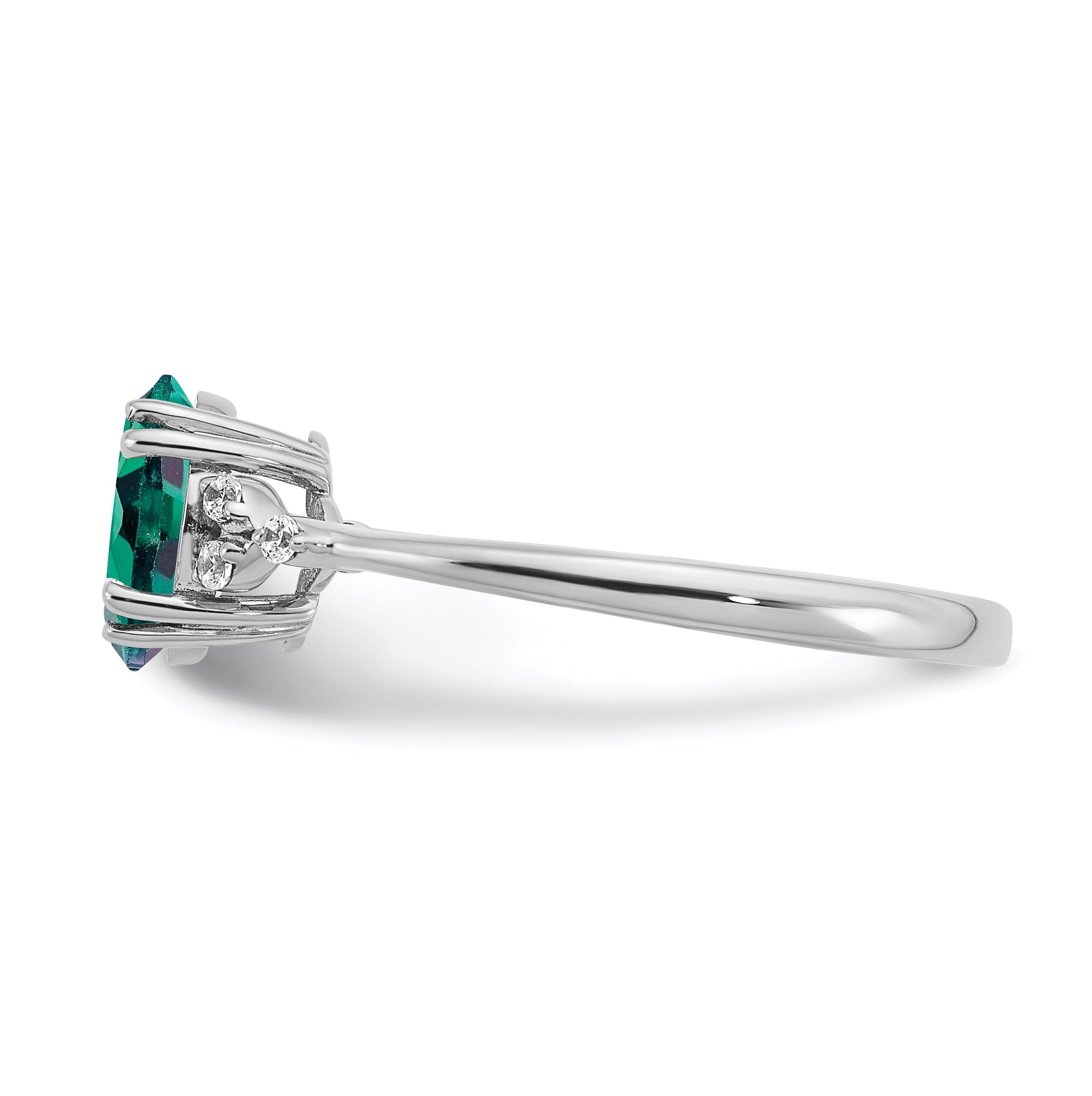 Sterling Silver Rhodium plated Created Alexandrite and Dia. Ring, Size 6