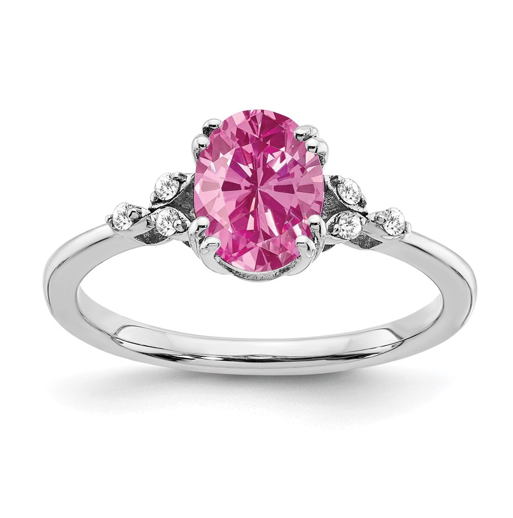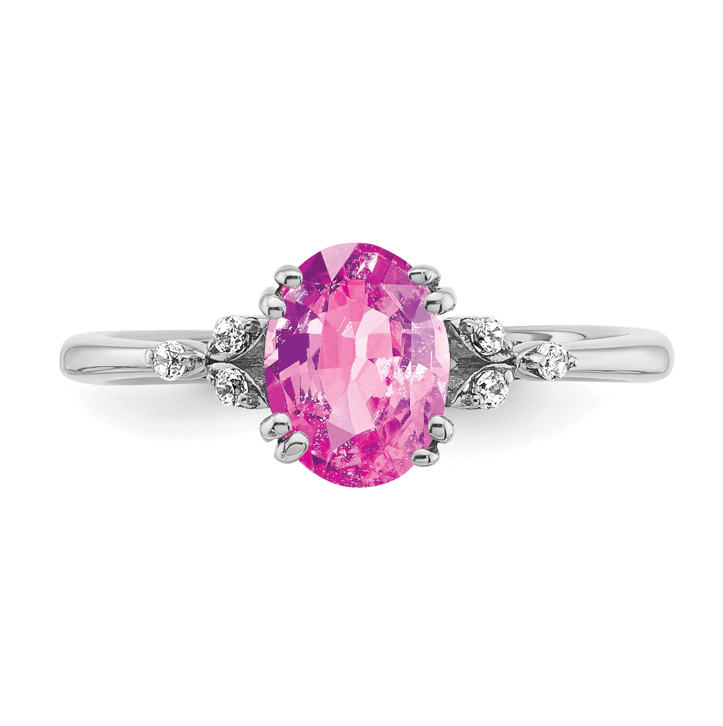 Sterling Silver Rhodium plated Created Pink Sapphire/Diamond Ring, Size 7