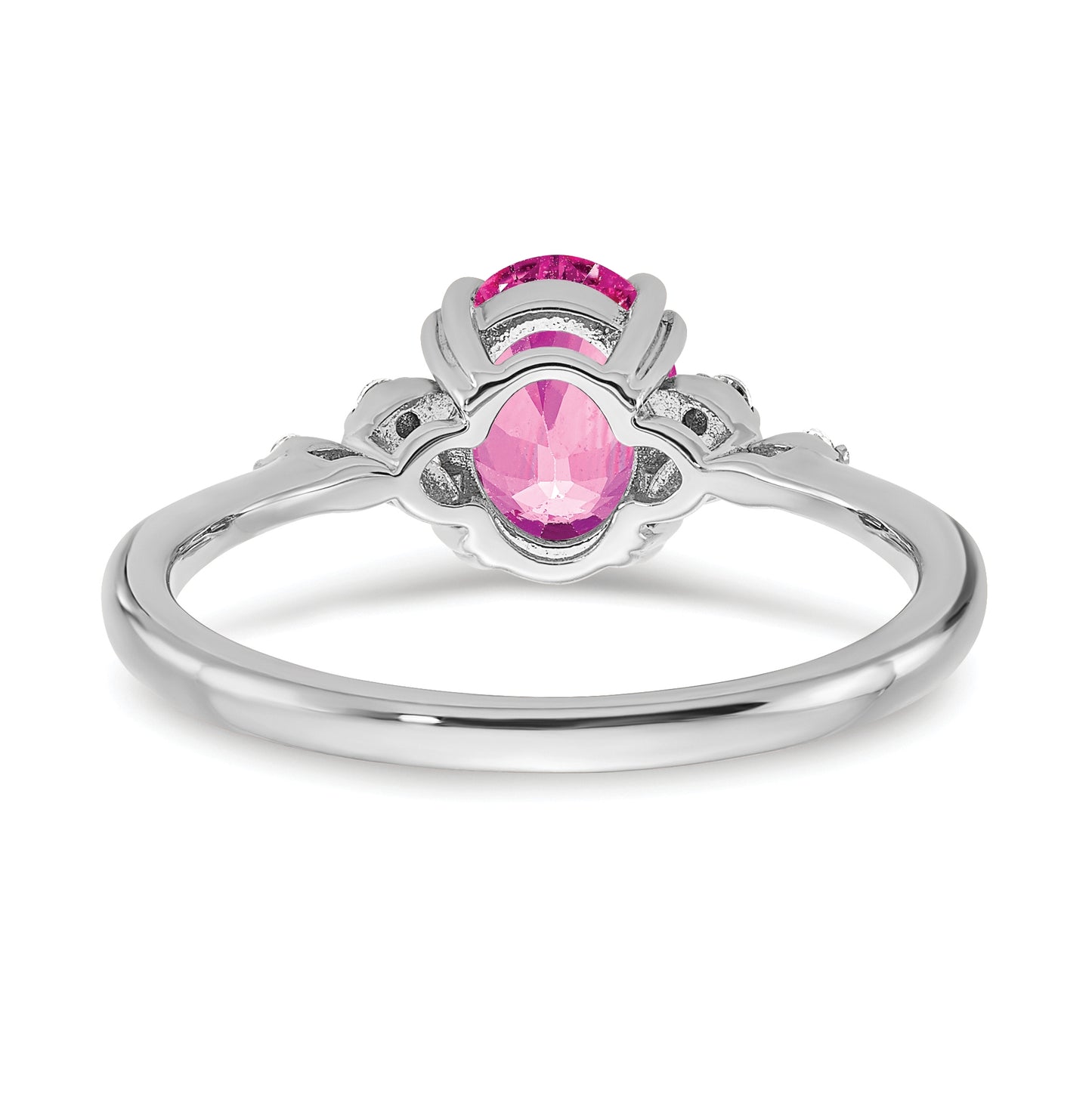 Sterling Silver Rhodium plated Created Pink Sapphire/Diamond Ring, Size 8