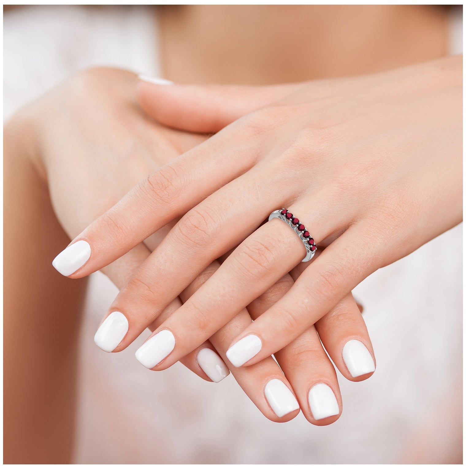 Sterling Silver Rhodium plated Created Ruby and Diamond Ring, Size 8