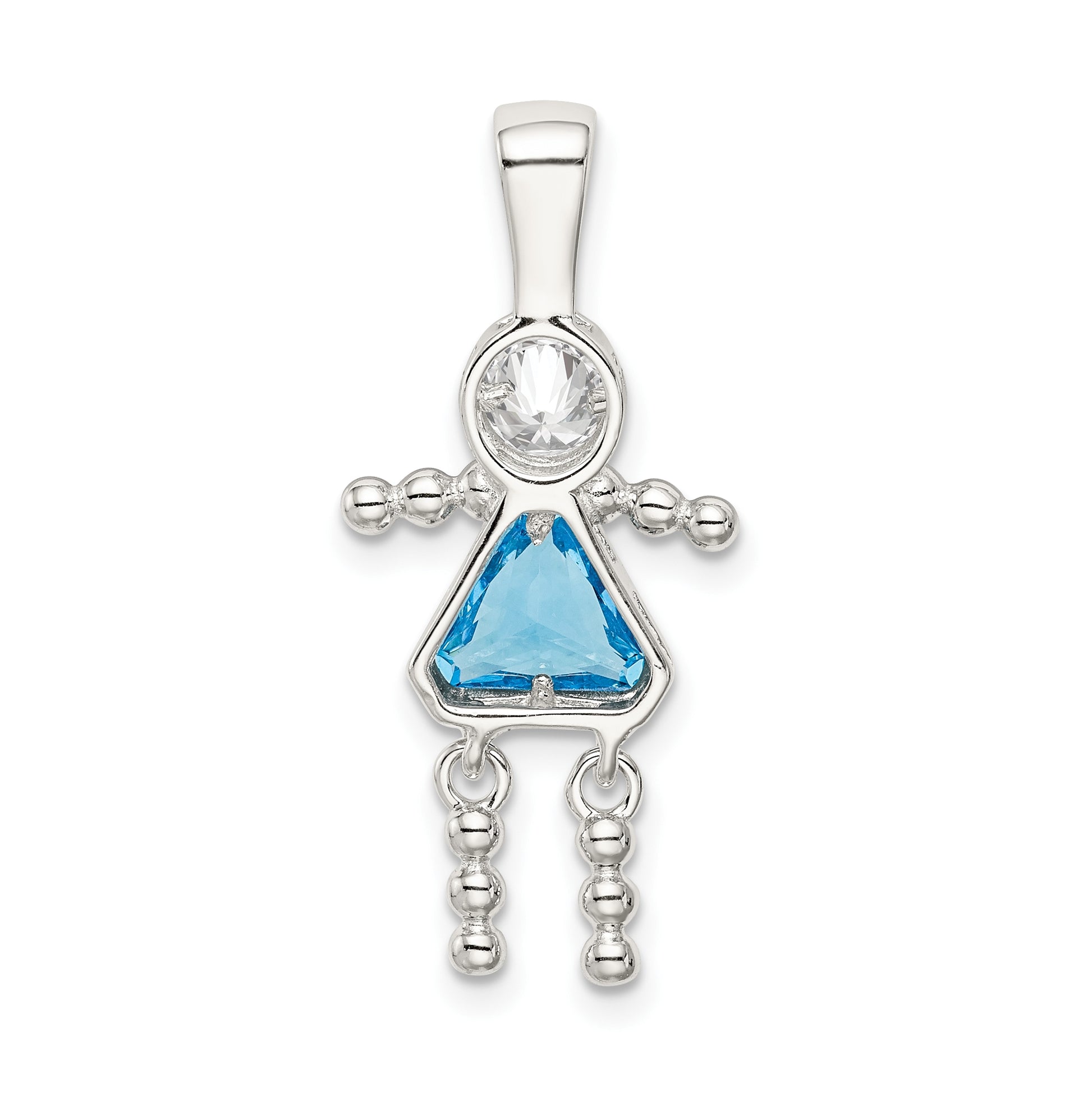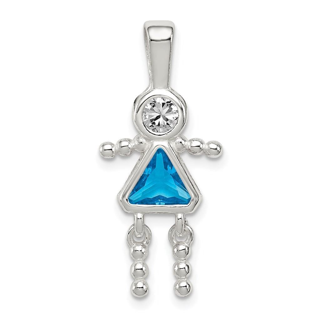 Sterling Silver Rhodium plated Cubic Zirconia & December Glass Girl Pendant
